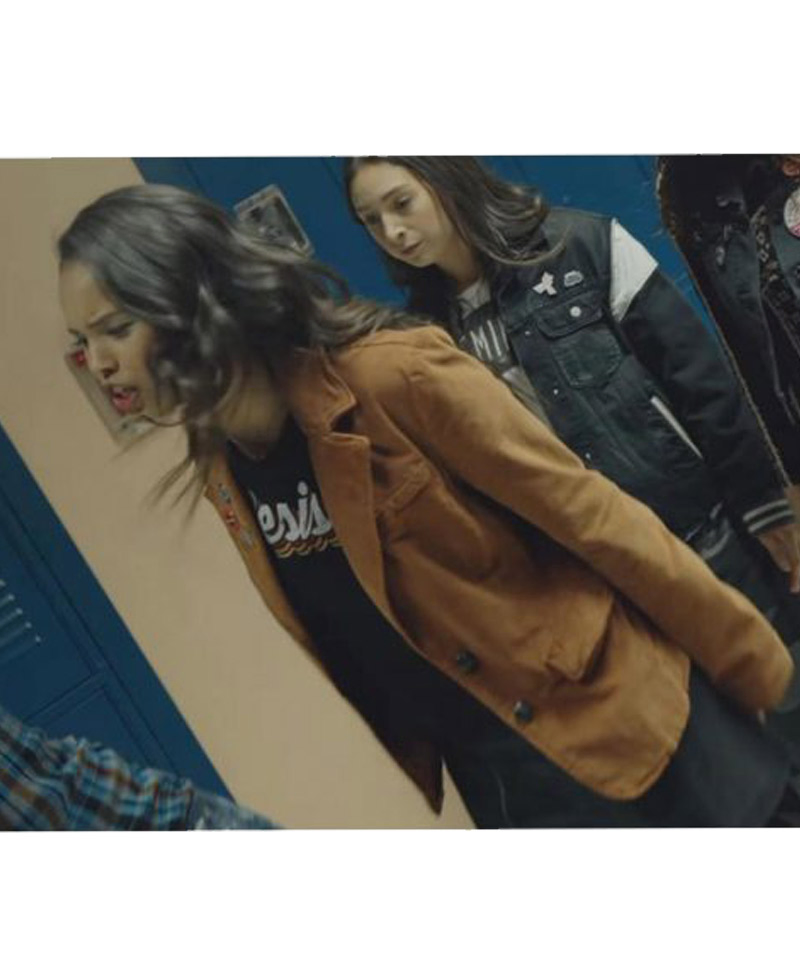 Jessica davis jacket was worn by the talented actress Alisha boe in the famous and suspicious genre American web television series titled as”13 reasons why”. This jacket is produced from rich and lasting suede leather material. You will feel extremely warm and comfortable in this apparel because on the inside, soft viscose lining is stitched. It comes in brown colour. 13 reasons why Alisha boe jacket has front buttoned style closing. It comes with an elegant lapel style collar. The chest and waist pockets allows you to secure stuff in them. This jacket has long length slim sleeves on open hem cuffs. It is perfect for cold climates and also it gives your appearance an astounding and engaging look.