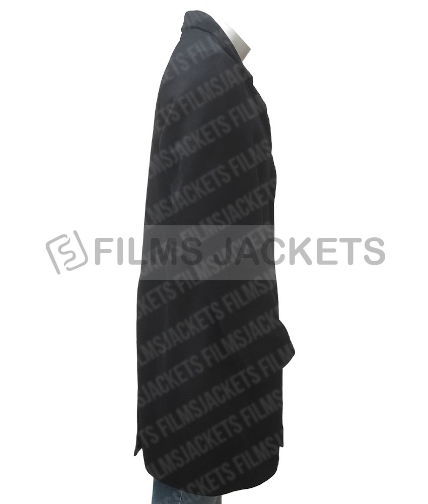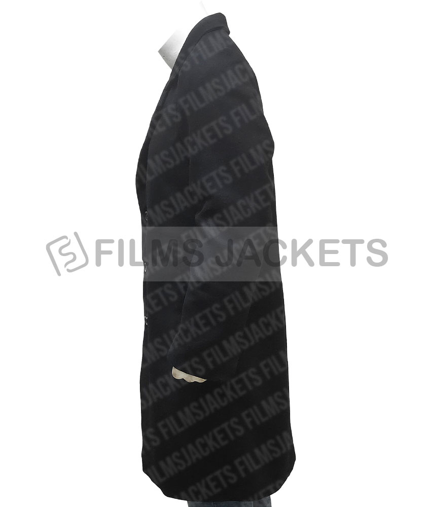 Andre Davis coat was worn in the famous American thriller action genre movie where the veteran actor Chadwick Boseman who is exceptionally known for this clothing style wore this black coat. This coat is fabricated from wool material and has internal soft viscose lining which prevents your body from cold and chilly weather. It has black rich and pure color. Chadwick Boseman 21 bridges coat has front buttoned designed closing. It comes with an appealing lapel designed collar. The black coat has full-length sleeves on open hem style cuffs. The coat has front pockets for securing stuff.