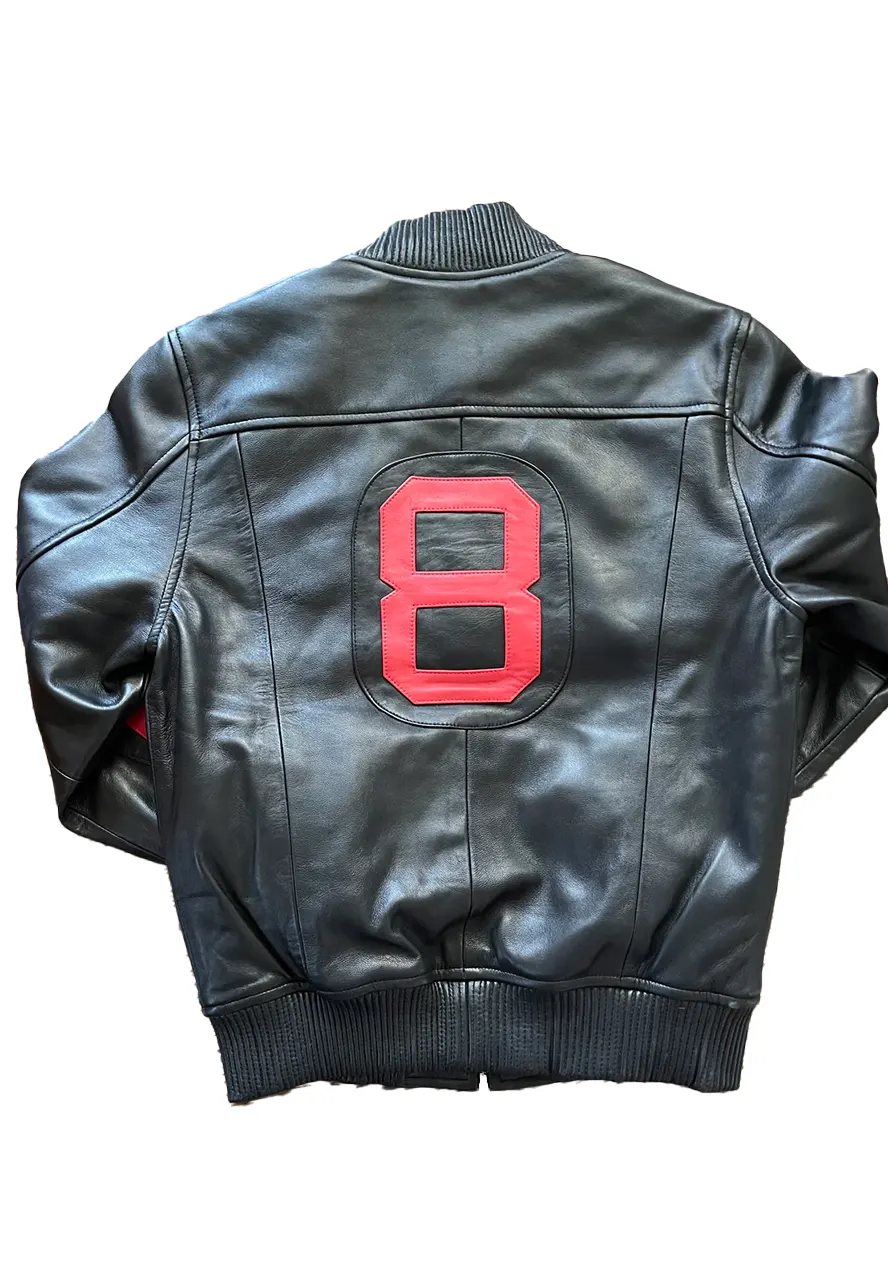 8 Ball Black And Red Bomber Leather Jacket