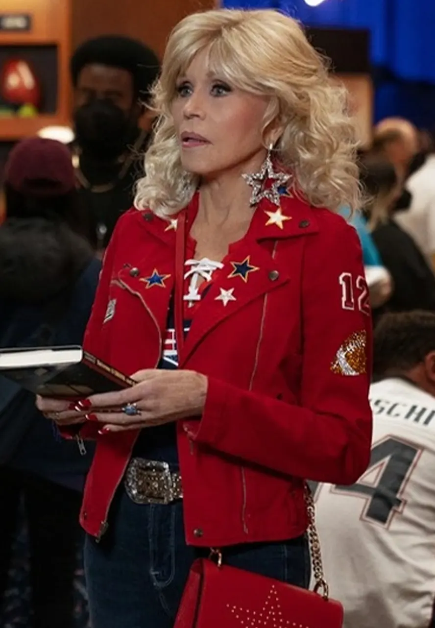 It’s About Time to Give Yourself a Classy Look With the Good Touch of Modern Style Just by Wearing the 80 for Brady Jane Fonda Jacket. Its Top-quality Cotton Makes It Warm and Luxuriant and Its Soft Viscose Inner Will Comfy You as Long as You Wear It. The Vibrant Red Color Makes It Enchanting. The Jane Fonda Cotton Jacket Has Been Designed by Using Features Like Lapel Style Collar, Zippered Closure, Side Waist Pockets, and Zippered Cuffs. Now Cast a Spell on All Around You Just by Wearing the 80’s Jane Fonda Costume.