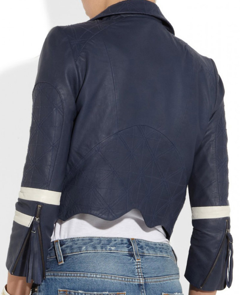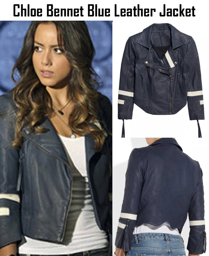 The Agents Of Shield Chloe Bennet Blue Leather Jacket is the only dress that adorns your personality. It is the perfect replica of the outfit worn by the great actor Chloe Bennet in the television series named as “Agents Of Shield”. If you have seen the series you will aware of the fact that Chloe Bennet looked loving only because of his impressive appearance. The outer part of the attire is made from top class genuine leather. Once you invest and get benefit for long years. The soft durable viscose lining is added internally in the Daisy Johnson Blue Leather Jacket. The asymmetrical lapel collar style forms adorable façade. The navy blue shade is very unique and attractive. The quilted pattern is present on the shoulders, collar, lower back and hemline. The wavy cut of hemline on the back is fetching. Two vertical zipper pockets are added on the waist side whereas two inside pockets are also given. A new design you will enjoy when you wear it is the presence of white stripe detailing near collar and cuffs. The Agents Of Shield Chloe Bennet Biker Jacket has snap button on collar to make you more engaging.