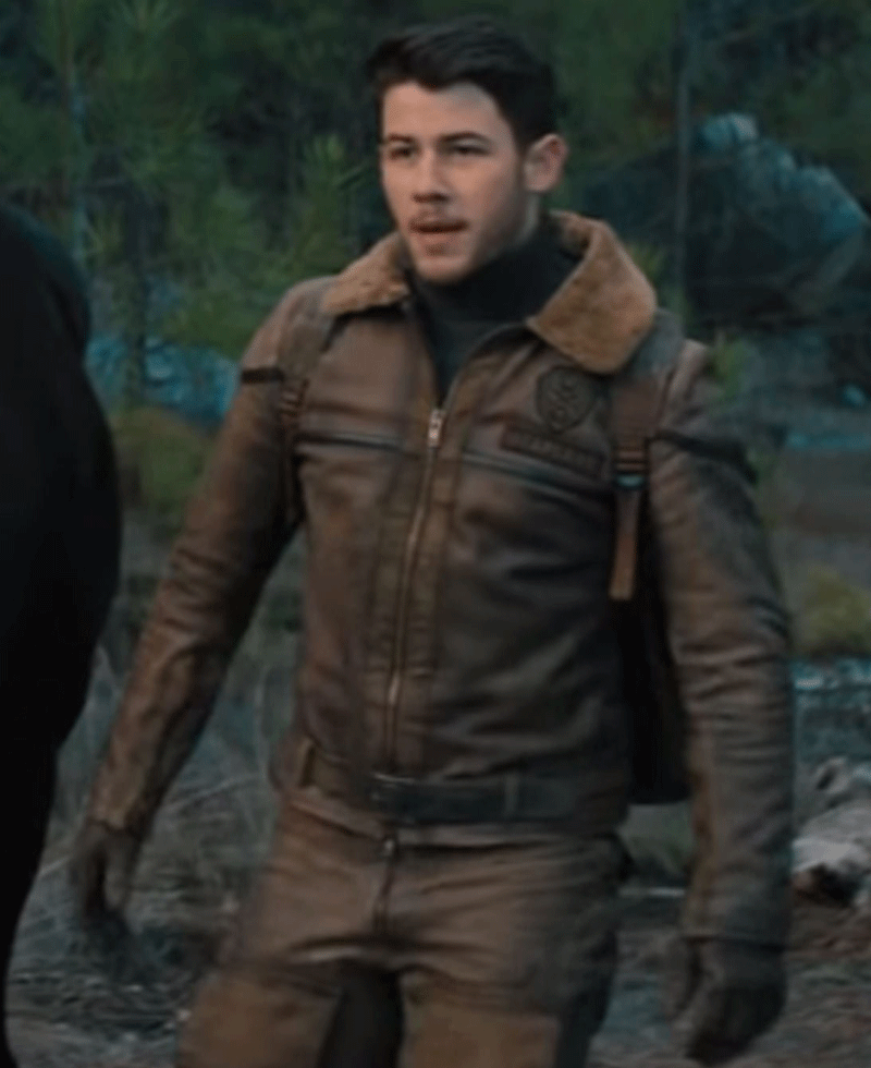 Alex Jumanji The Next Level Nick Jonas Brown Leather Jacket