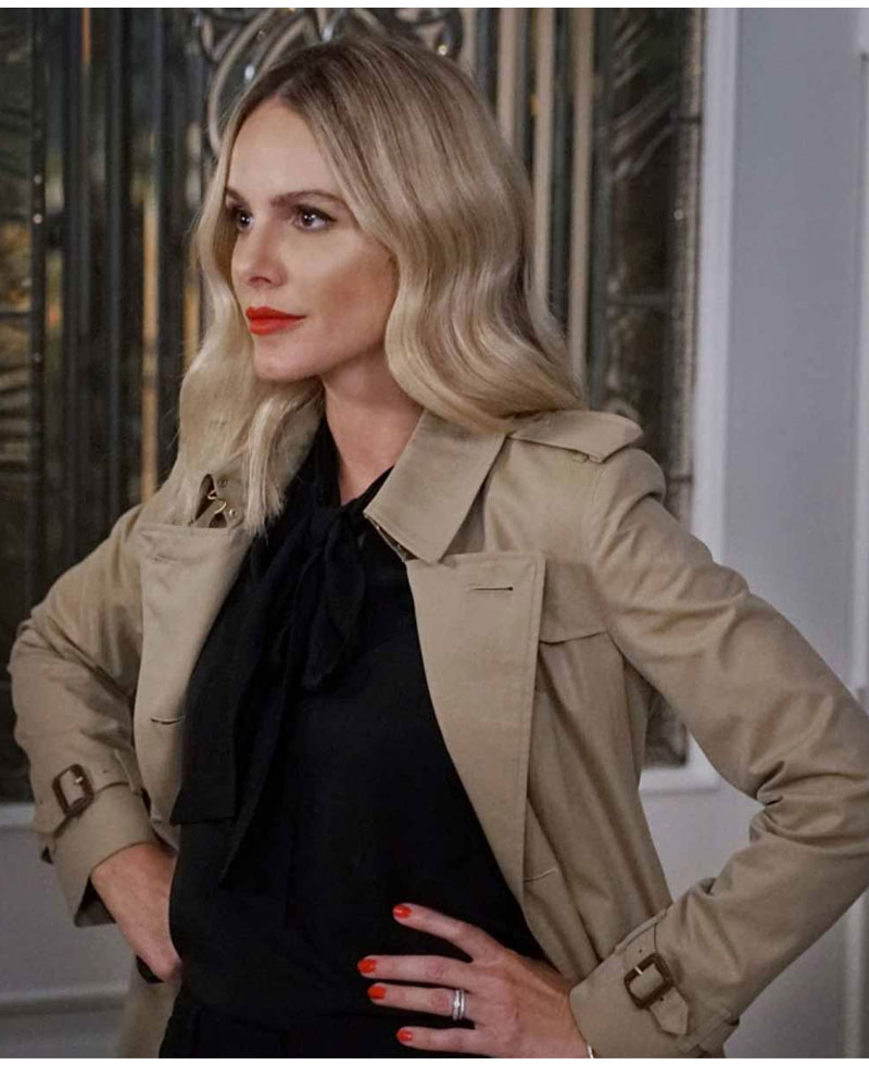 The idea of this stylish trench coat is taken from the famous American sports web television drama series called All American where the actress Monet Mazur wore this coat when she was portraying the character of Laura Fine Baker. The external side of this coat is fabricated with premium and rich quality cotton fabric. On the internal side of this coat, there is a lining of smooth and soft viscose attached that keeps you warm and comfy. The fine quality stitching makes this Laura Fine Baker coat durable to wear. The coat comes in a mesmerizing tan brown color. There is a shirt style collar on this coat as well. The coat has buttons attached to its front side for closure. There are shoulder epaulets on this trench coat as well. All American Monet Mazur coat has open hem style cuffs on full length style sleeves. The coat has two front waist pockets and two chest pockets too.