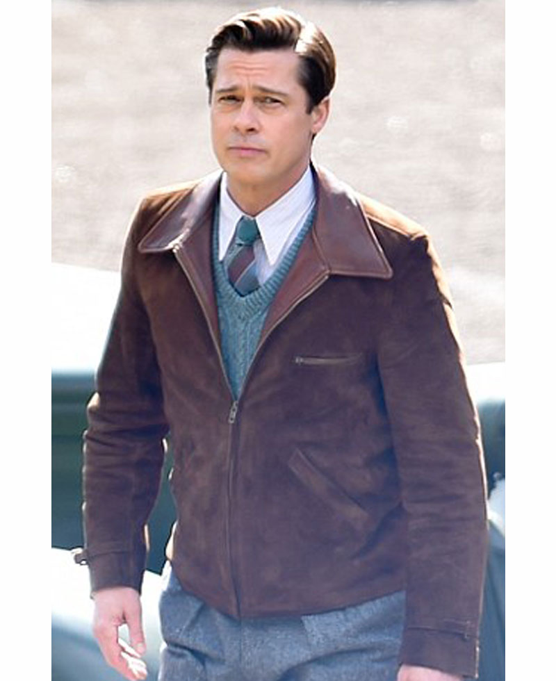 Allied Brad Pitt Jacket is the gimmick from one of the greatest films yet to be released of Brad Pitt titled as “Allied”. This outerwear is made from Suede Leather, includes inner viscose lining and hemline on bottom. Max Vatan Jacket also covers shirt style leather collars, one zip pocket on chest, front zipper closing, two slanted pockets and long sleeves with buckled belt style. This is a casual kind of wear, which has been worn by phenomenal actor Brad Pitt who recently divorced from Angelina Jolie. Brad Pitt Allied Jacket is brown in color.