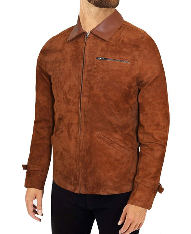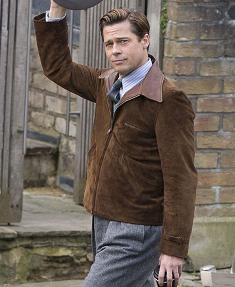 Brad Pitt Allied Movie Brown Suede Leather Jacket