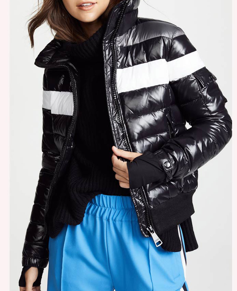 In the American television drama series released recently titled as the spinning out introduced this mesmerizing puffer jacket. This jacket was worn by the beautiful actress Amanda zhou when she was playing the character of Jenn yu. This Jenn yu puffer jacket is made from high quality parachute material. It comes in black color with addition to white, grey and black stripes that make it more captivating to wear. The spinning out Amanda zhou bomber jacket has snap tab style cuffs. It comes with front side waist zipper pockets where you can secure stuff. The jacket comes with an internal soft and comfortable viscose lining that keeps you warm. Also, the stand up collar looks so appealing. The jacket has a front ykk branded zipper for the closure. It is perfect for parties.