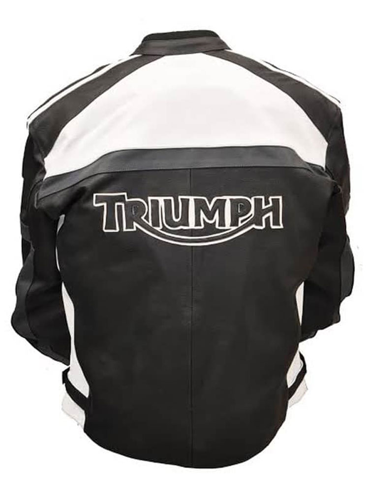 Men’s Motorcycle Racing Triumph Black and White Leather Jacket