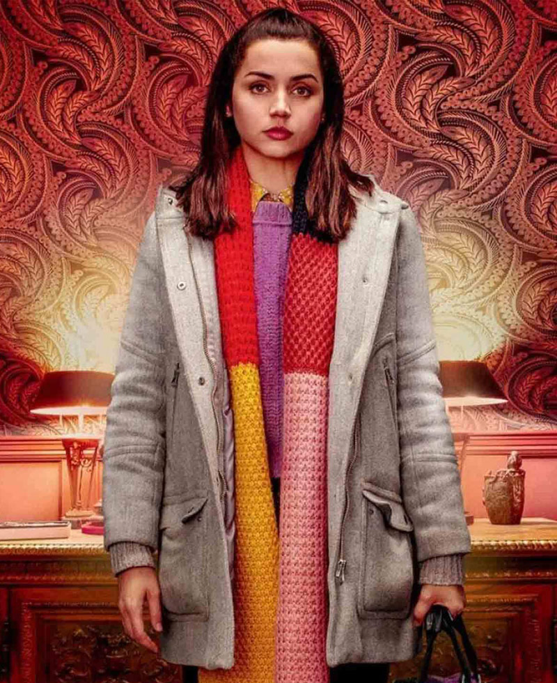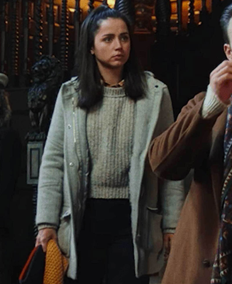 Marta Cabrera coat was worn in the movie called knives out where the actress ana de Armas depicted the character of Marta Cabrera wearing this elegant coat. This marta cabrera coat is made from high quality wool material. It has soft and comfortable viscose lining on its internal side that will keep you warm and comfortable all the time. It comes in grey color. Marta Cabrera coat has a wide style collar. It comes with front ykk branded zipper closing along with snap tab fastening. Knives out ana de Armas coat have open hem style cuffs on full length sleeves. It has front side waist flap pockets and chest zipper pockets where you can secure stuff.