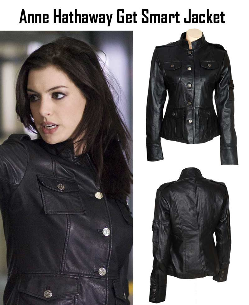 Agent 99 Get Smart Film Anne Hathaway Black Leather Jacket