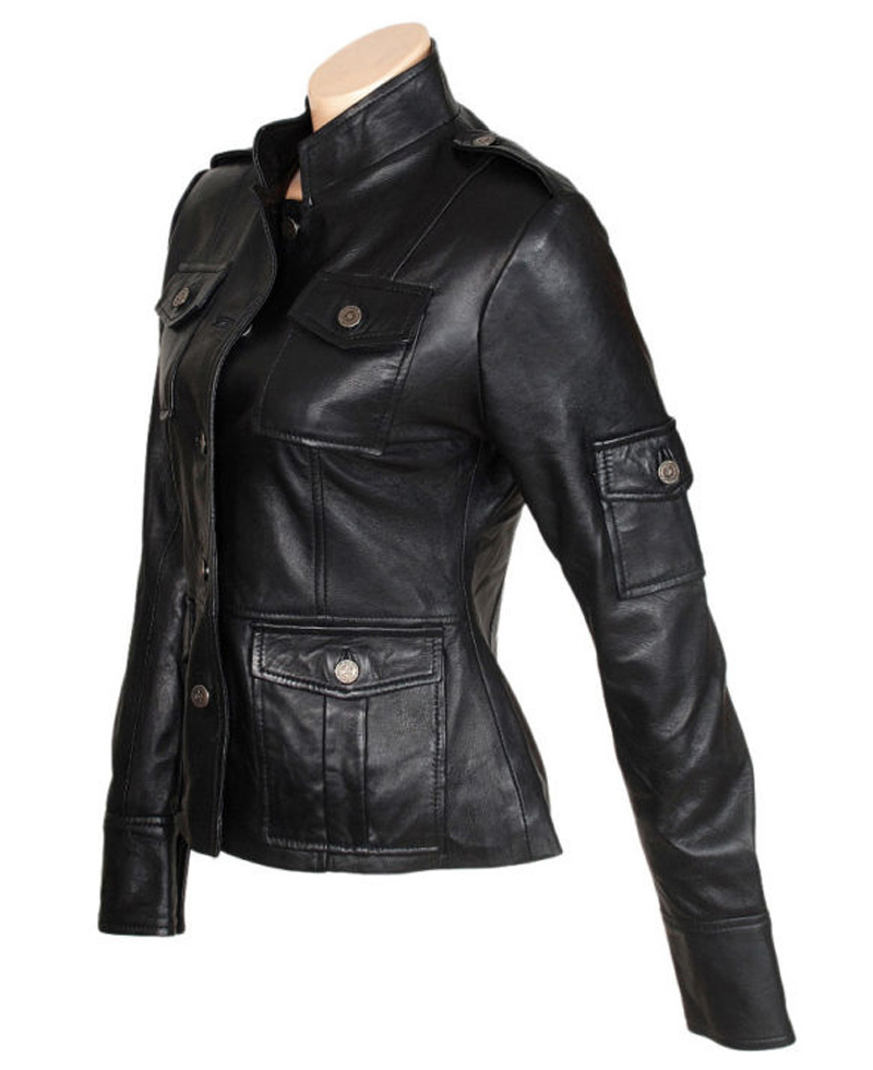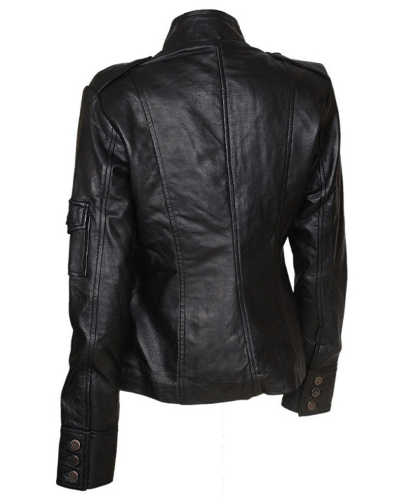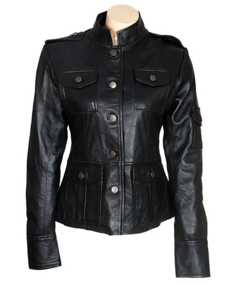 The Anne Hathaway Get Smart Jacket is the inspiration of the adorable dress shown in the super hit movie named as “Get Smart”. The attractive actress Anne Hathaway depicted the leading role as Agent 99. She impressed viewers and her dressing style has been copied by the fashion industry. The high grade genuine leather is used in the preparation of the outfit. Internally, viscose lining is given. The black color of the Get Smart Anne Hathaway Leather Jacket appeals everyone. The standup collar makes you fabulous and you look amazing. There is no use of zip in the wear. The buttoned closure is given instead of zipper shutting. Two front flapped pockets with buttons are present on the chest whereas two side waist same pockets are also present. One flapped pocket with button is also added on the left sleeve. It has created wonderful impression. The Get Smart Agent 99 Jacket has slim fitting style and ladies believe that it is the only garment which will make them winning. The long sleeves have buttoned cuffs.