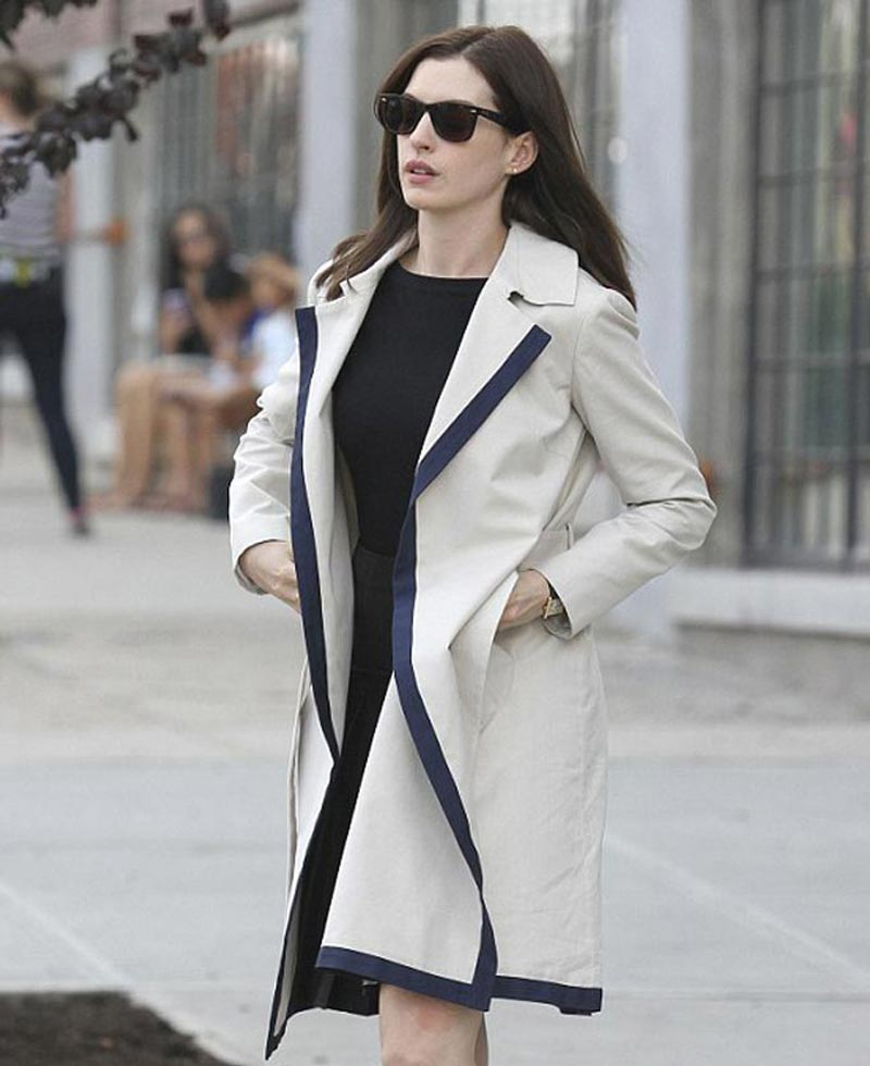 Hey ladies! Here is good news for you. Jules coat is now available to embellish your persona. You will look the same as Anne Hathaway as you have seen her in the movie “The Intern”.  The trench-style coat in off white shade will form your heavenly image.