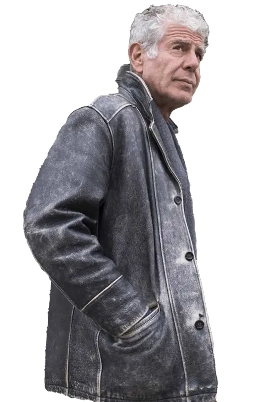 The elegant gray color adds a refined touch, making it a standout piece for any wardrobe. Designed with smart details such as a lapel-style collar, buttoned closure, and practical side waist pockets, this jacket blends function with fashion. Whether you’re exploring city streets or heading out on the open road, this signature piece inspired by Anthony Bourdain is the perfect companion for effortless style.