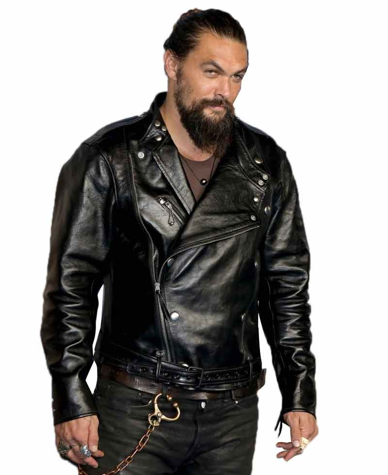Jason Momoa Motorcycle Asymmetrical Black Leather Double Breasted Jacket