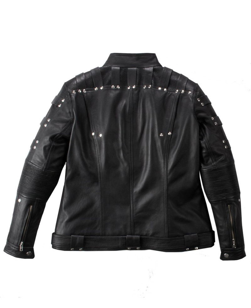 The Black Canary Jacket is an engaging outfit that a sensational character Dinah Laurel Lance wore in the most famous American television series named as “Arrow Season 5”. Externally, the attire is prepared from best genuine leather or faux leather. On the other hand rayon soft lining has been added internally. The black shade makes you super appealing in a gathering. The stylish outerwear is enough to grasp the attention of opposite sex. Ladies preferred Black Canary Leather Jacket has snap tab collar style. Metallic studs have enhanced the charm of the outfit. These studs are added on shoulders, sleeves, back and collar. The combed design is present on elbow. The sleeves are given with quilted designs. The fabulous appearance makes you special in the eyes of others. At the hemline you will found waist belt. It makes you smarter. Arrow Season 5 Dinah Laurel Lance Leather Jacket has two front vertical zipper pockets along with studs. Long sleeves have snap tab zipper cuffs that are unique style.