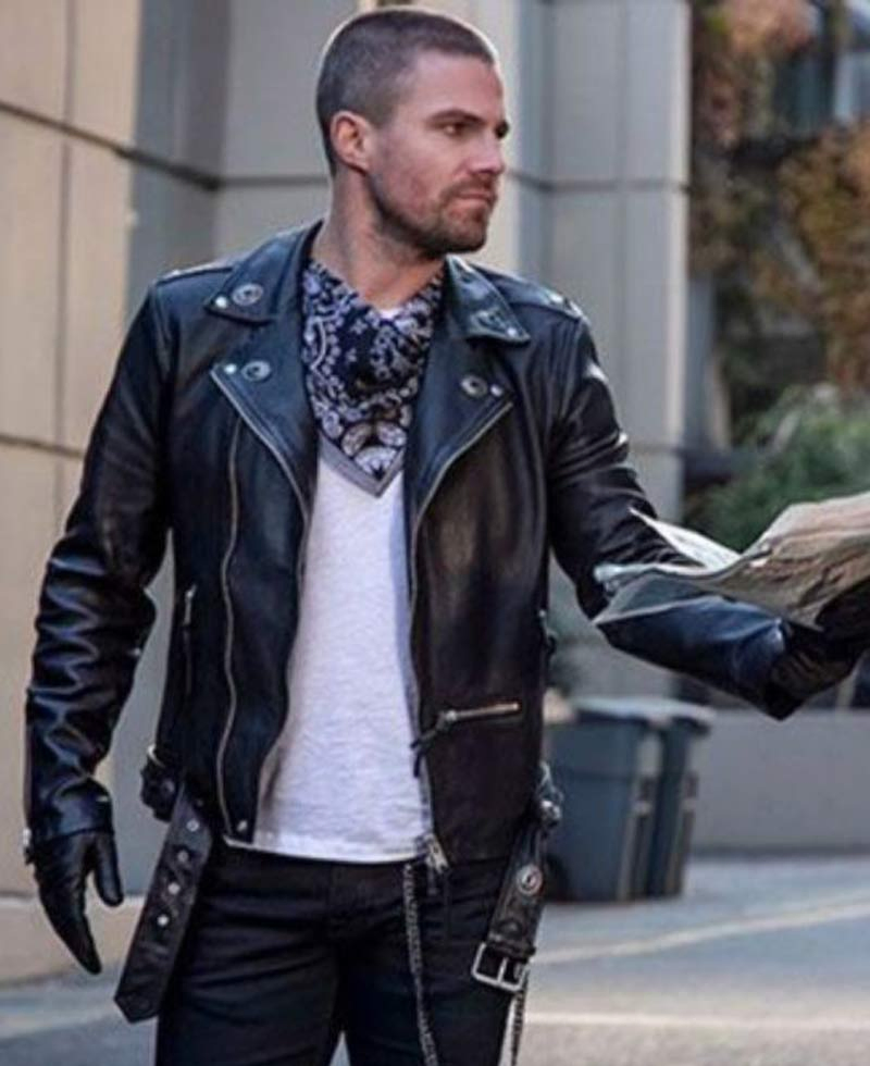 Oliver Queen Arrow Part 2 Elseworlds Stephen Amell Black Leather Jacket