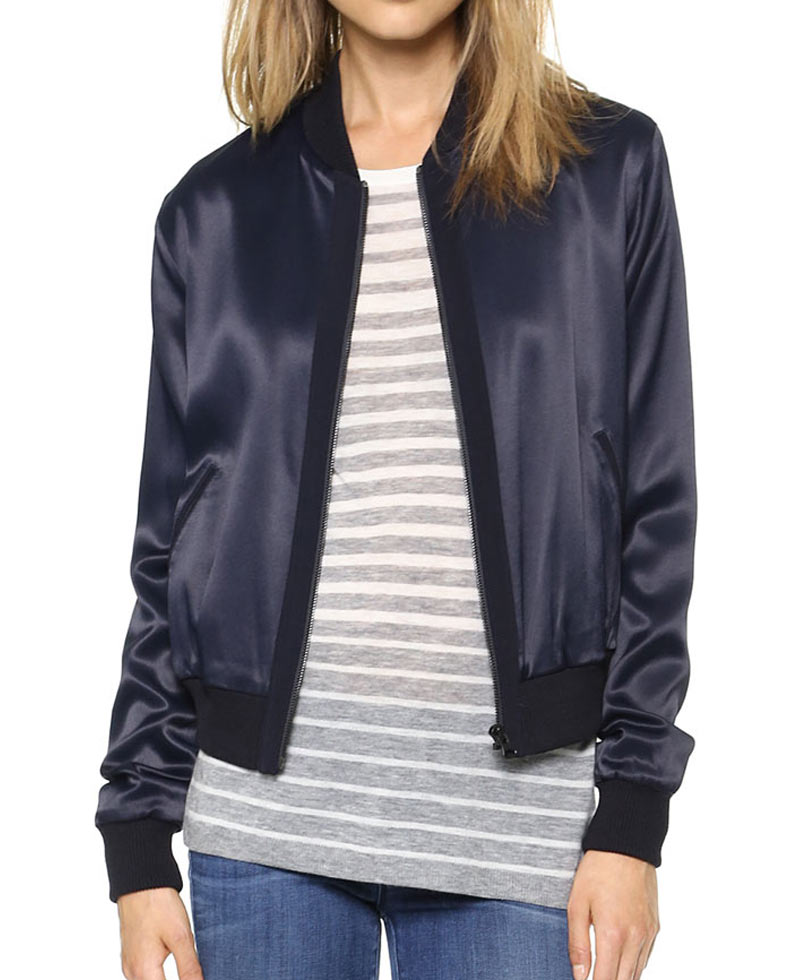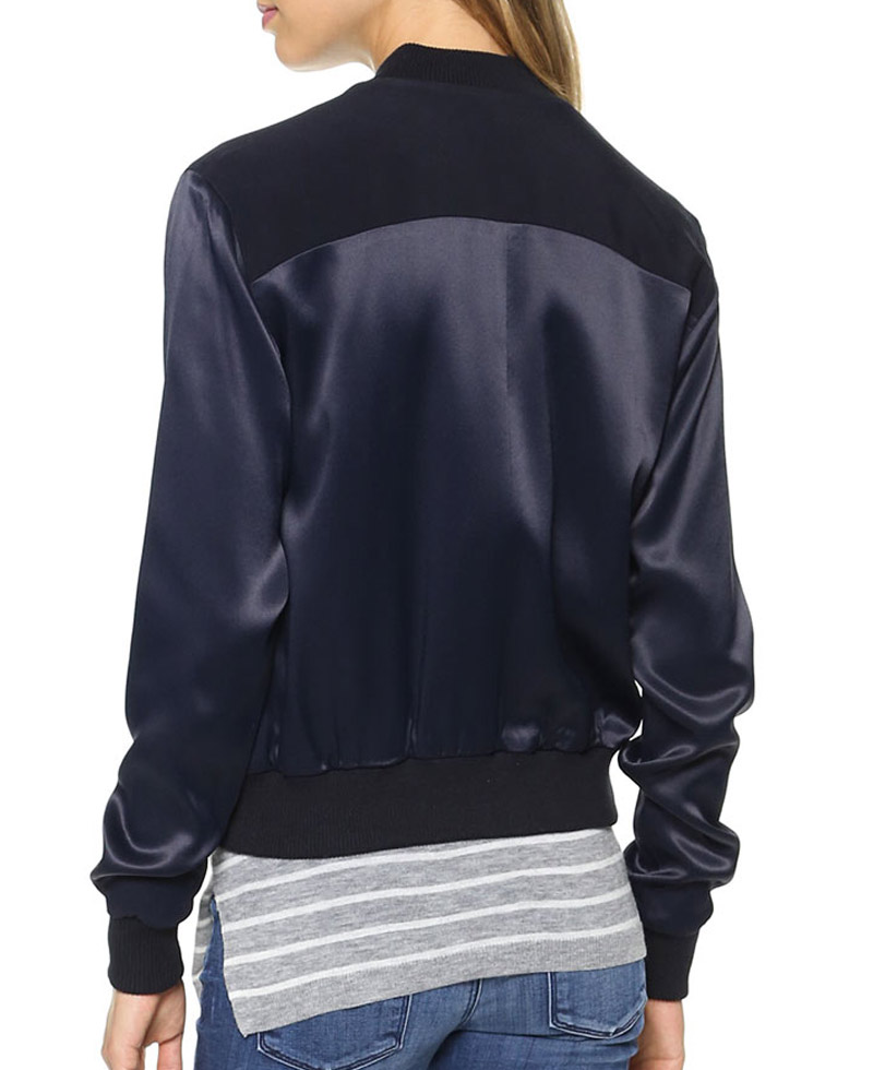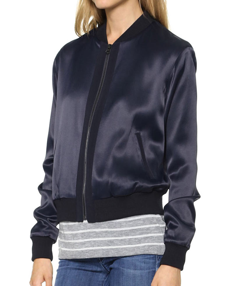 Thea Queen Bomber Jacket is made from the pure satin fabric. The very fine and comfortable viscose lining is used in the inner of the jacket. This outclass jacket has front zipper closure and rib knit collar. The attire has long sleeves with rib knit cuffs. Arrow Willa Holland Blue Jacket has two side zipper waist pockets. This bomber jacket consists of rib knit hemline. Blue color will highlight your beauty. Be the type of a person everyone wants to explore.