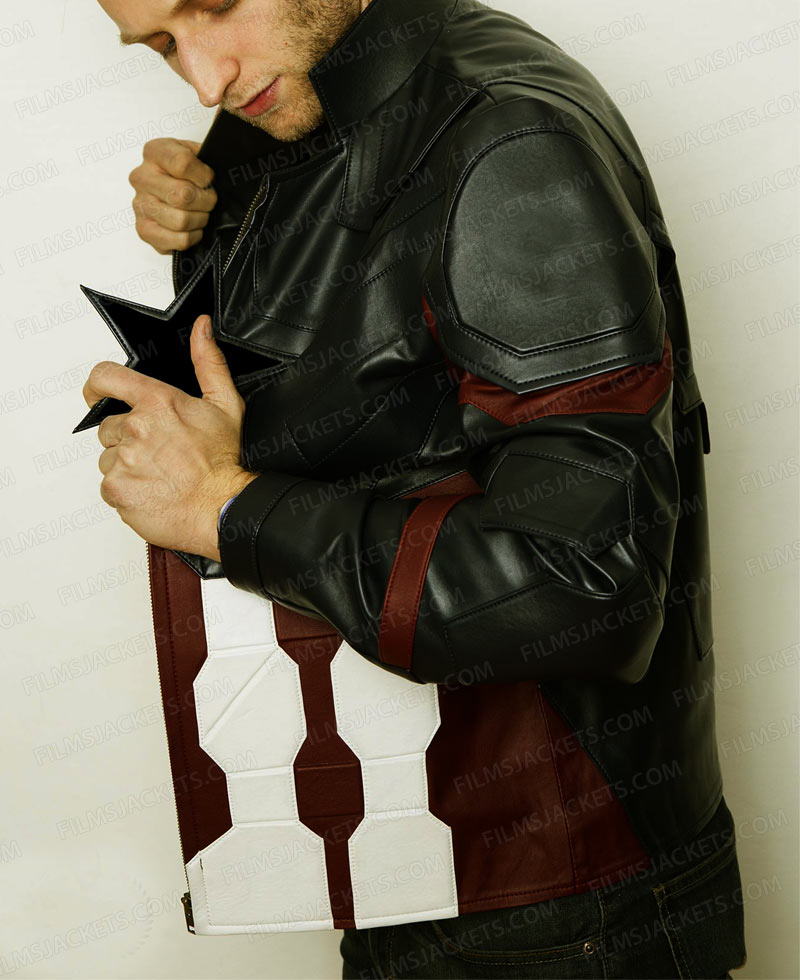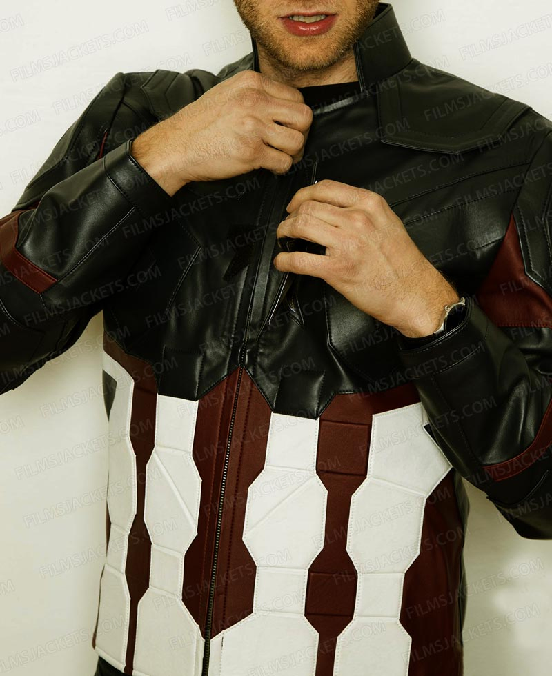 The science and fiction movie Avengers Infinity War will display in next year. Charming personality Chris Evans has dressed Avengers Infinity War Captain America Jacket. It is now included in the latest trend. Every guy is pleased to wear it because of vigorous features present in it. The external part of the attire is prepared from genuine leather or faux leather whereas inside comfy viscose lining is attached. Captain America Infinity War Jacket has front zipper closure. Fitting appearance will make your personality smarter. Standup collar style is the beauty of the garb. Both sleeves are large and fitting. At the middle a star is embossed which is very nice. You will find embossed designing all over the outfit. Captain America Infinity War Jacket has zipper cuffs.