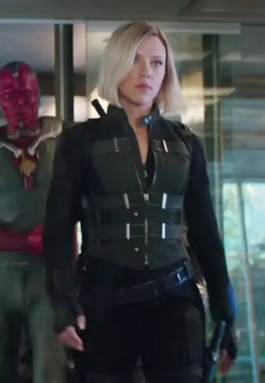 Scarlett Johansson’s Avengers: Infinity War Vest has straps designed that look outstanding. The front conclusion is connected with the zip. Two horizontal zipper pockets are added to the chest. Comfortable viscose lining has been added inside the Vest. The snap tab collar of the scarlett johansson vest is superb. Johansson worked in the movie as black widow. The sleeves are long, fitting, and have padded elbows. Buttoned cuffs are the end of sleeves.