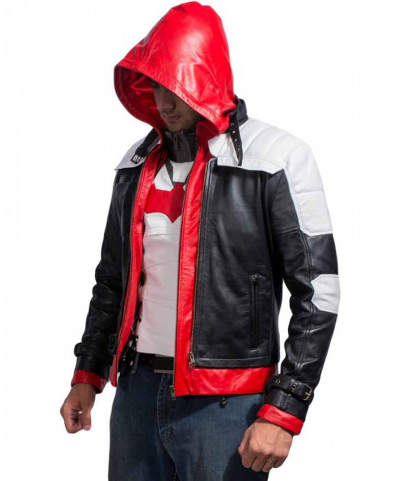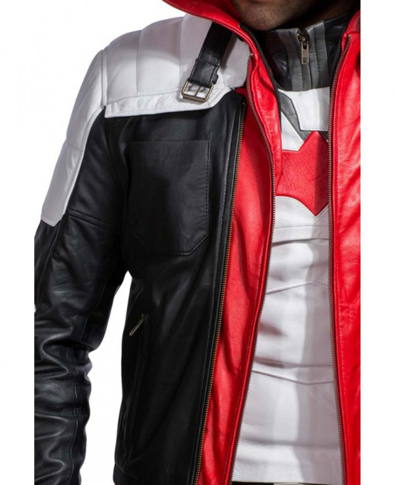 The Red Hood Jacket has been worn by the character of video game named as “Batman Arkham Knight”. The character Jason Todd has appeared in this outfit. The eye-catching appearance of Jason impressed everyone and the Red Hood Jacket became an essential part of the fashion industry. The game was released in 2015 and it was an action and adventurous video game that were liked by all and sundry especially youngsters. The Red Hood Leather Jacket is prepared from the top quality faux leather or genuine leather. The batman logo at front and back is the unique feature which is very stunning for the video game lover. The padded shoulders of Red Hood Leather Jacket give you comfortable feeling. Two waist and two side pockets are added in the jacket. The red hood on black and white jacket looks appealing.
