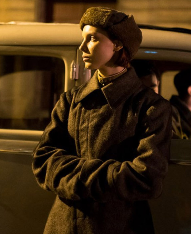 In the popular Russian historical movie titled as Beanpole, the Russian gorgeous and talented actress Vasilisa Perelygina wore this coat when she was portraying the character of Masha. The coat is fabricated from premium and soft quality of wool material. The internal side of this coat is stitched with soft and cozy viscose that keeps you warm all the time. It has open hem style cuffs on full length style sleeves. There are buttons on the frontal of this coat for the closure. The two front side waist pockets are designed for you to secure stuff. You can carry this apparel for formal as well as for casual events. It will give your personality an engaging and charming appearance.
