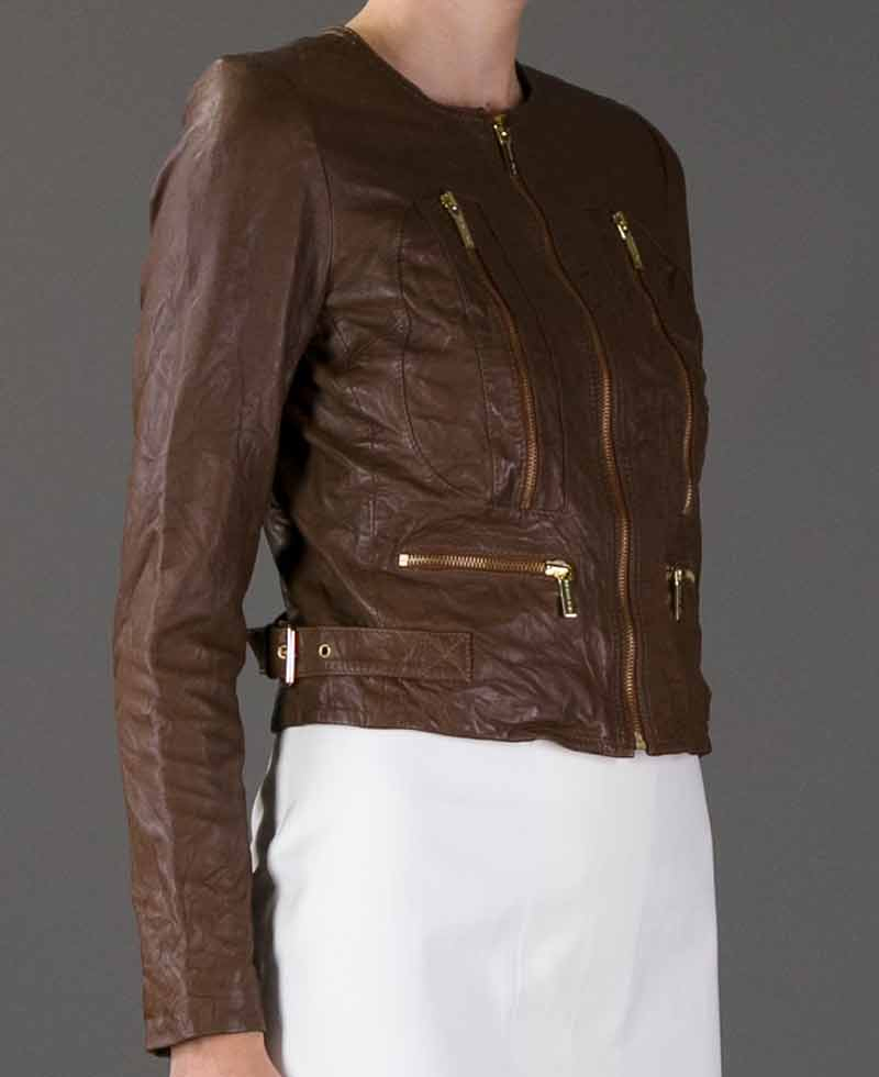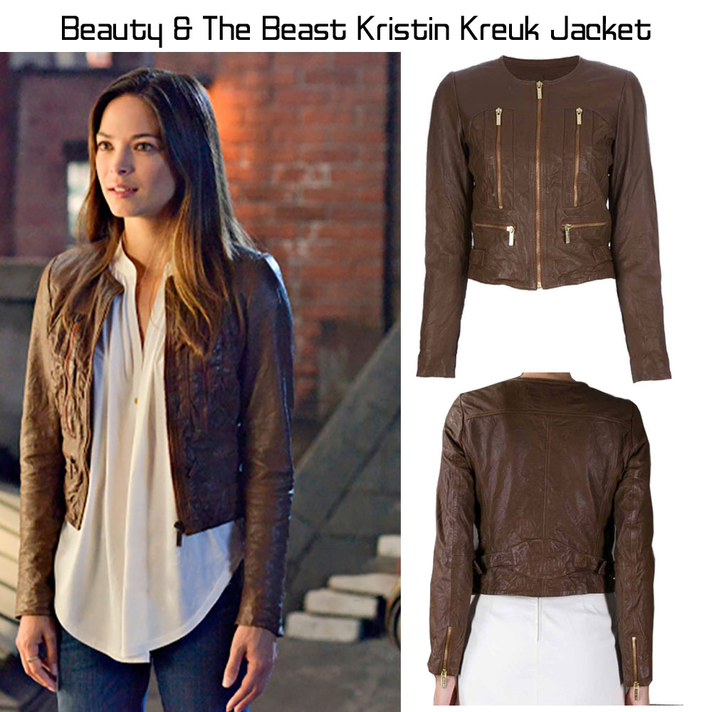 catherine chandler brown leather cropped jacket is fabricated from the high-quality genuine leather material. This jacket will guard you against cold climates and will make you feel warm and cozy. This jacket will give you an engaging appearance. The quality of the material is enduring and long-lasting. This jacket has an internal soft viscose lining that makes it comfortable.  beauty & the beast kristin kreuk brown leather cropped jacket has a round neck style collar. This jacket has front ykk branded zipper style closure that fits in perfeclty with the style of this jacket. This jacket has full length sleeves on zipper style cuffs. This jacket contains front zipper pockets at chest and waist. There is an attached belt on the back of this jacket. This jacket is available here in a brown color. You can carry this jacket for any occasion whether it is casual or for a party. Order this jacket now before we run out of stock.