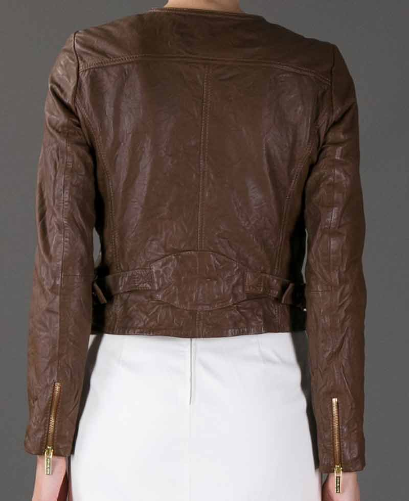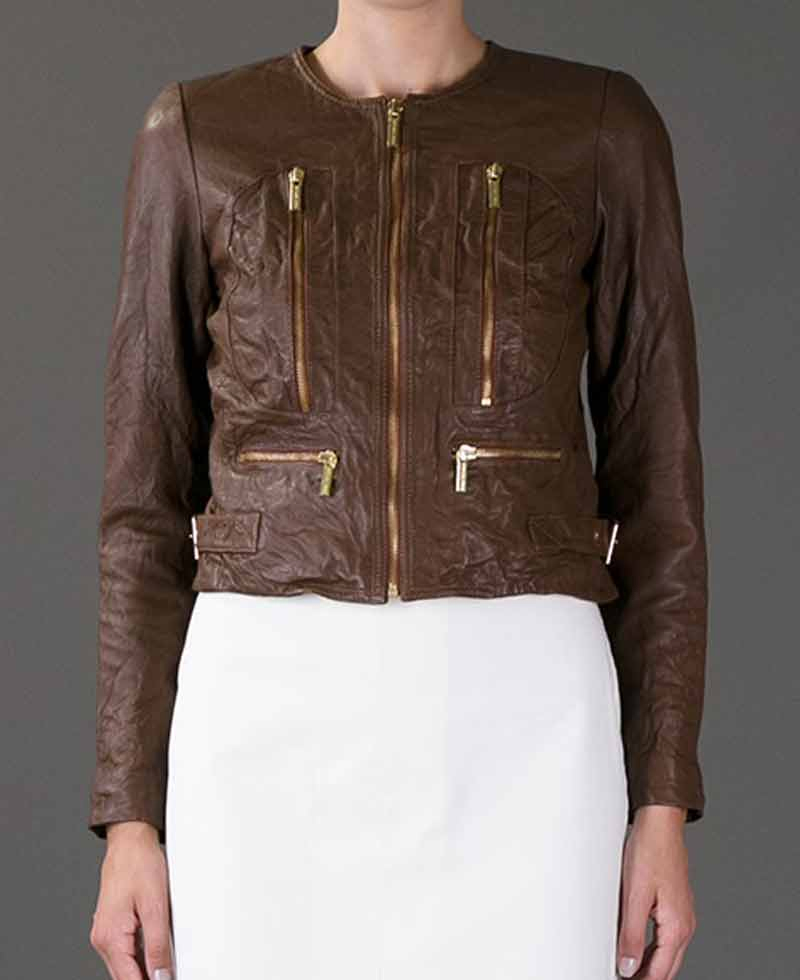 Catherine Chandler Beauty and The Beast Cropped Brown Leather Jacket
