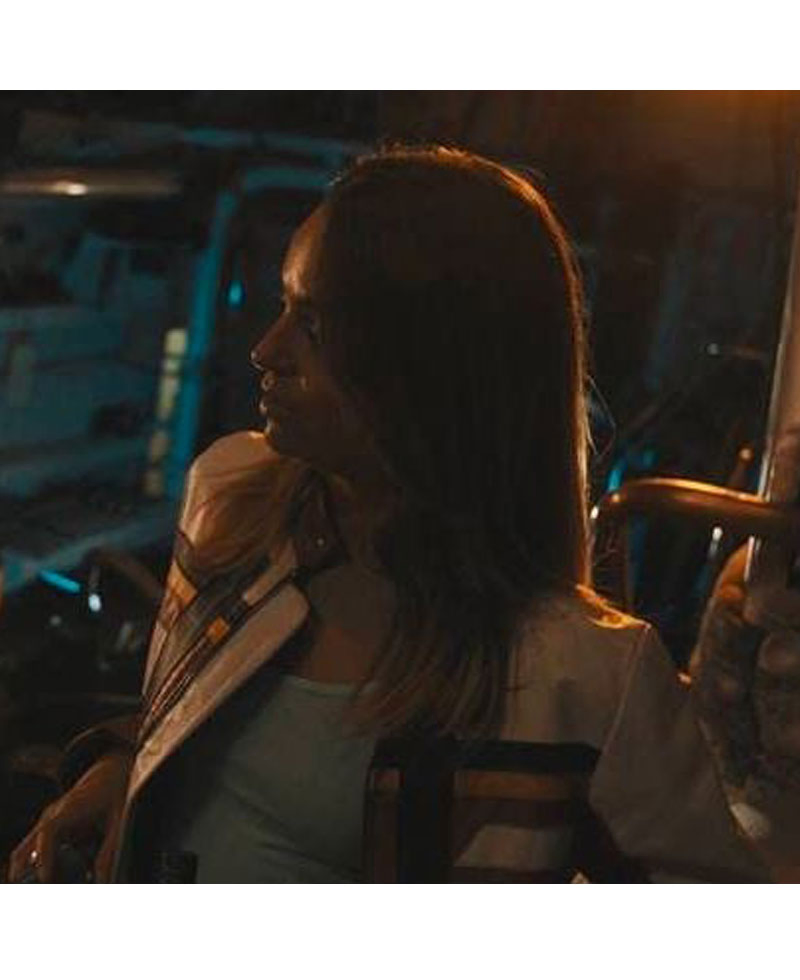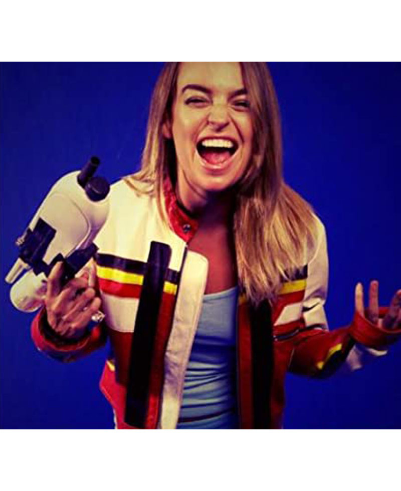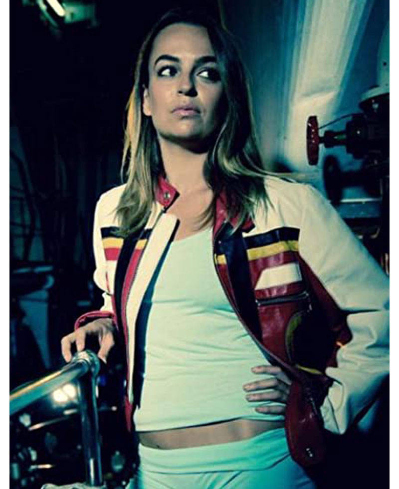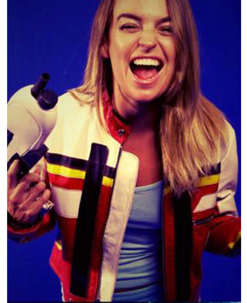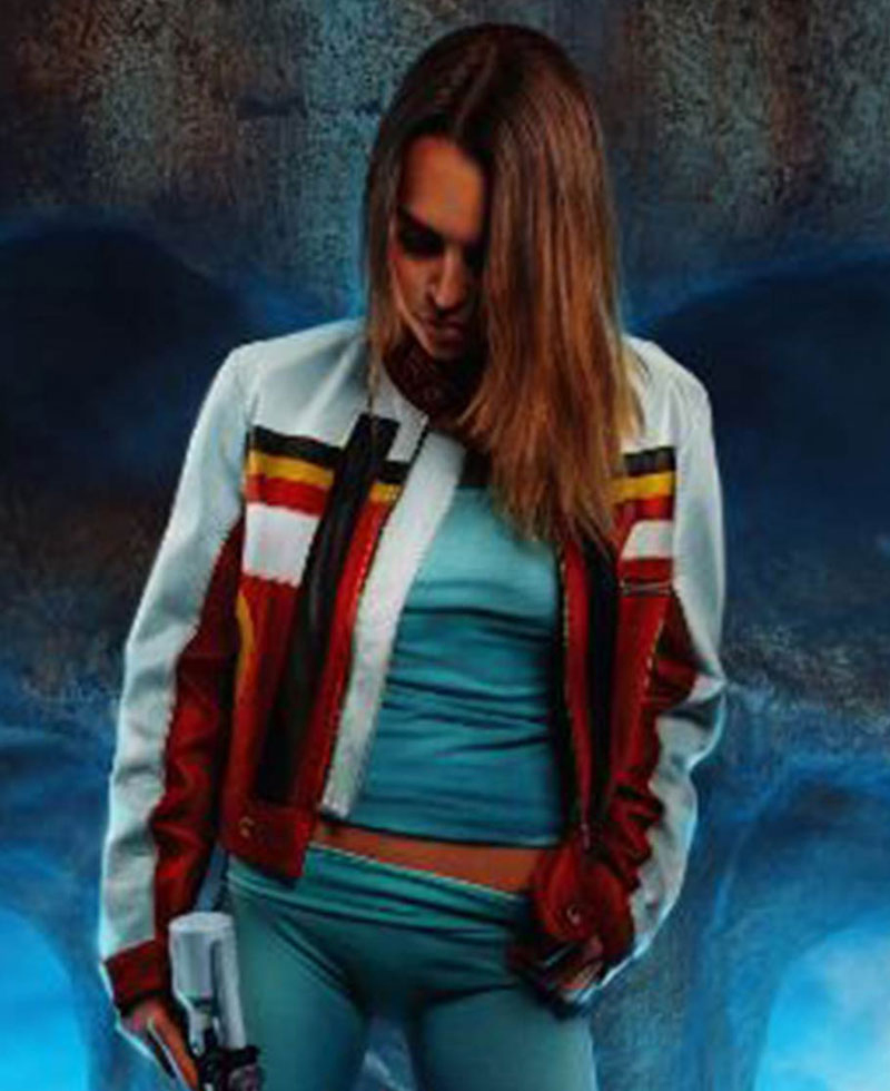 The idea of this biker leather jacket is taken from an American science fiction movie called Violent Starr where the gorgeous and talented Australian actress Bianca Bradey wore this jacket. The external side of this jacket is manufactured with premium and rich quality genuine leather material. On the internal side of this Violent Starr jacket is a lining of smooth and soft viscose that keeps you warm and guards you against cold weather. The biker leather jacket has multi colors like red, green, white, and yellow which make the apparel more attractive to wear. There is a ykk branded zipper on the front side of this leather biker jacket for the closure. Bianca Bradey Violent Starr leather jacket has a stand-up style collar. The jacket has front pockets as well. The Violent Starr jacket has open hem style cuffs on long-length style sleeves.