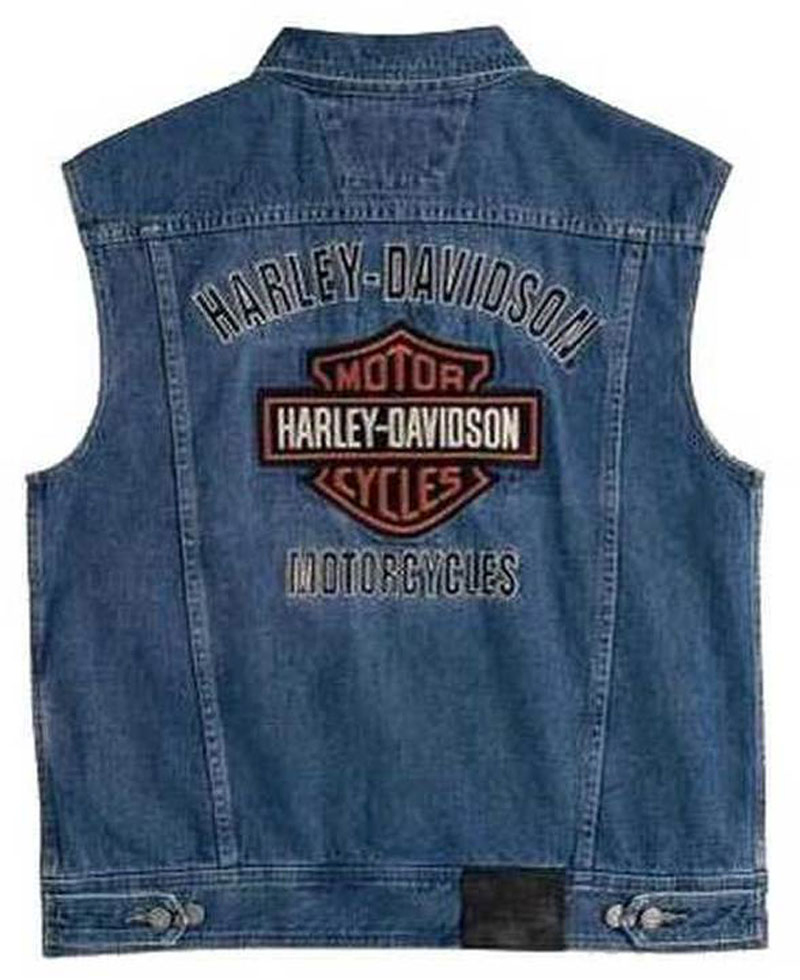 The Harley Davidson denim vest is one of our best-manufactured products this season. This biker vest comes in blue color. Premium and rich quality of denim material is used in the fabrication of this biker vest. This vest will give you a smart and appealing appearance. The internal side of this Harley Davidson denim vest is stitched with smooth and soft viscose lining that keeps you warm and comfortable the entire time. The vest comes with a classy shirt style collar. Harley Davidson vest denim has buttons on its frontal that makes a perfect fit for the conclusion. This biker vest has two side waist pockets along with two chest flap pockets where you can secure stuff. These pockets make the whole appearance of this vest appealing. Also, on the back of this vest is a Harley Davidson logo embroidered that looks attractive.