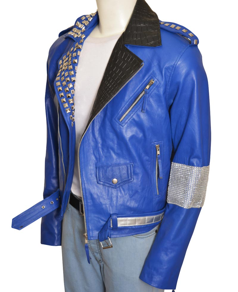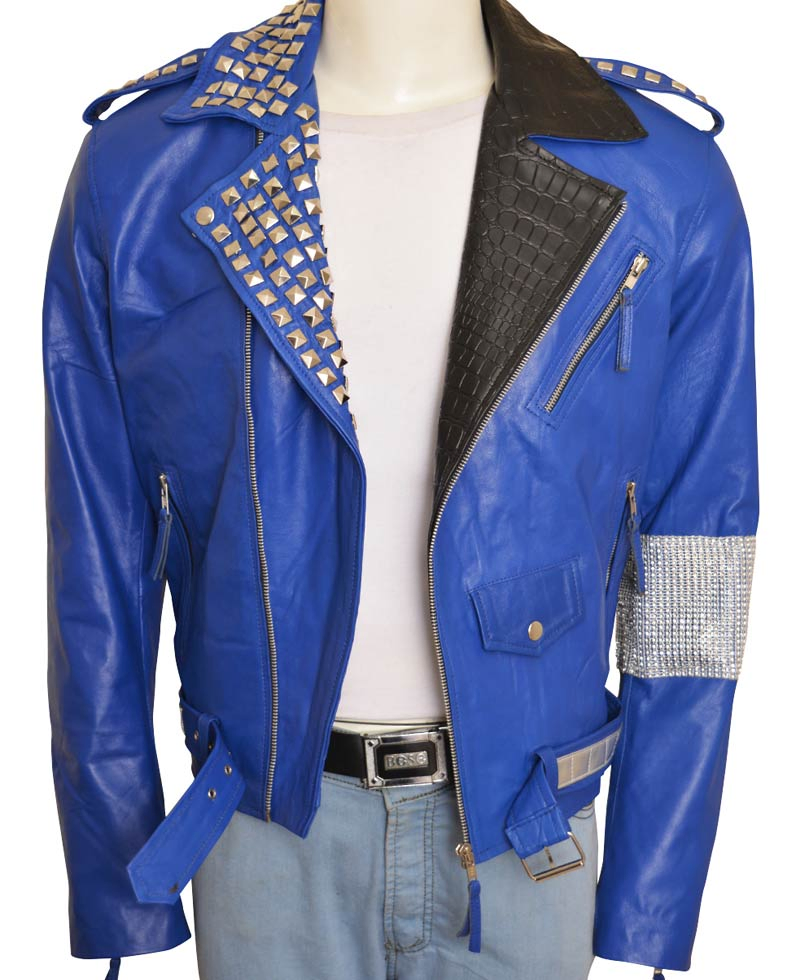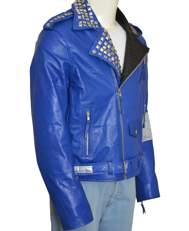 Brian Kendrick Jacket is made from genuine leather. Viscose lining is used. To enhance its beauty metal stud are used with lapel style collar and front zipper closure. Full sleeves are given. Zipper cuffs with long holder. Brian Kendrick Blue Leather Jacket is of attractive blue color along with two metal stud shoulder epaulets. Two side zipper pockets and one slanted zipper pocket at the left chest. One flapped button pocket at the left. Silver patch is given on the left sleeve. To identify your waist, Brian Kendrick Jacket has a waist belt also.
