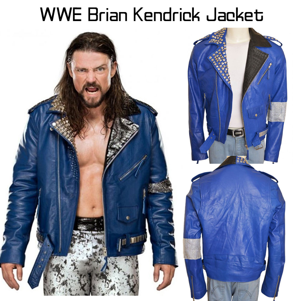 WWE Brian Kendrick Moto Style Blue Leather Jacket