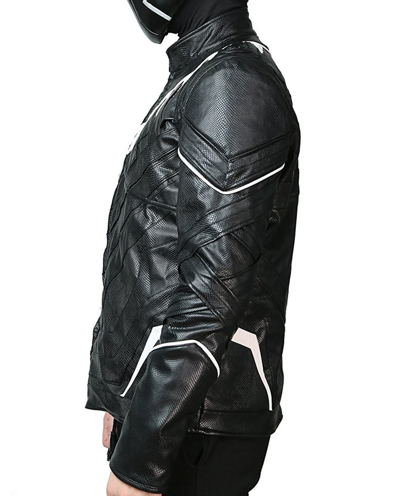 The Black Panther Jacket is a current fashion statement that has gained astonishing fame. The youngsters have liked it too much and they all have it in their wardrobe. The young guys dress in this beautiful and appealing Black Panther Jacket in any occasion with proud. It was first presented in an American movie named as “Black Panther”. The film was released in 2018. The outer shell of the astounding Black Panther Leather Jacket is made from the faux leather. It is worn by the superstar Chadwick Boseman in the movie. The black color of the dress makes you high-flying in any gathering. The Black Panther Leather Jacket has standup collar style. You will enjoy two inside pockets and soft viscose inner lining. The grey stripes and designing is present at front and back side of the Black Panther Leather Jacket. Wear it and change the impression of your personality. Definitely, it will give you surprising look.