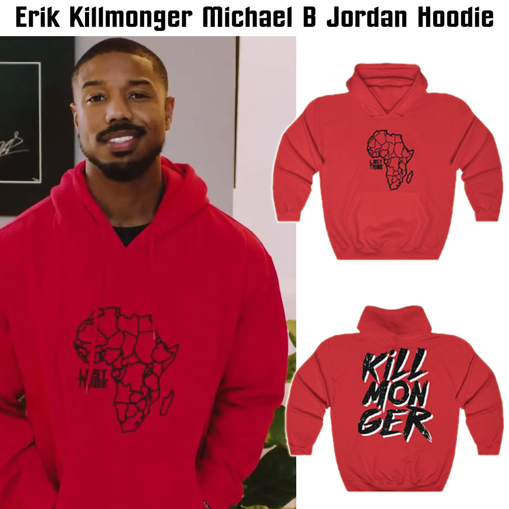 While portraying the character of Erik Killmonger in the American SCI-FI movie titled as Black Panther, the American veteran actor Michael B Jordan wore this pullover hoodie. The hoodie is fabricated by using high and premium quality of fleece fabric. The interior of this hoodie is stitched with soft and smooth viscose lining that provides you with warmth and comfort. The hoodie comes in red color. Killmonger hoodie has full length style sleeves on rib knitted style cuffs. Its pullover style makes it more attractive to wear. The Killmonger hoodie has a Lost Tribute Map embroidered on its chest. The attached hoodie with pullover strings looks amazing. Also, there is a KILLMONGER logo on the back of this hoodie. This hoodie is the exact replica of the original one.