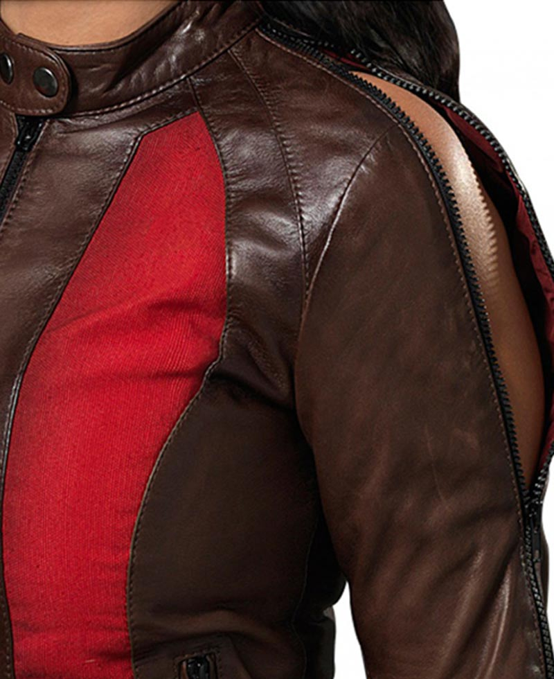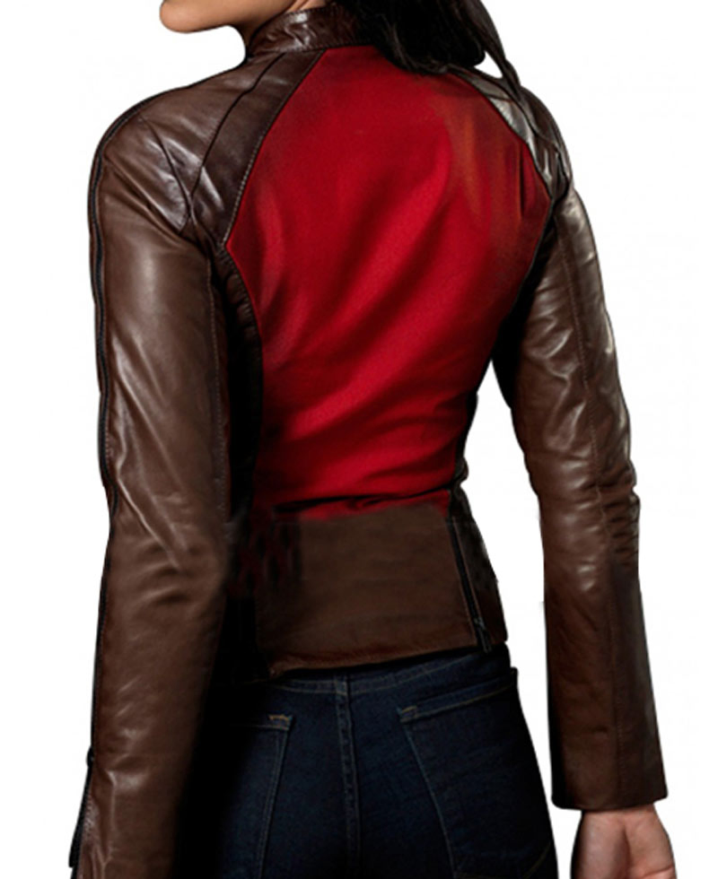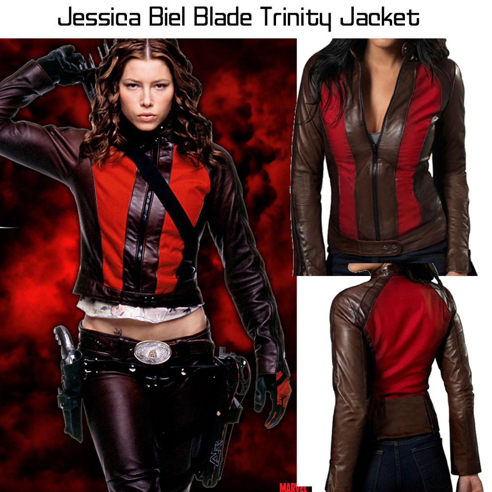 Blade is a film that moves around the concept of vampires which was first released in 1998 and then the Blade Trinity came out in 2004 which centred Jessica Biel as Abigail Whistler. The striking feature about the film apart from its graphic and interesting storyline was the clothing. The Abigail Whistler jacket is available in genuine leather. The highlight of the blade trinity Jessica Biel jacket is the use of red on brown jacket in the form of stripes in front and covering whole of the back. Abigail Whistler leather jacket is also perfect for the any event to look edgier because of zipper present on front closure with snap tab collar, shoulder to arm length, on cuffs, on the back side of hemline and on pockets on waist.