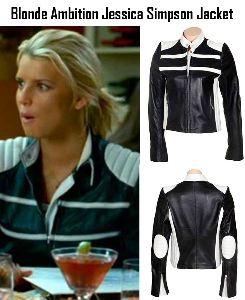 The star of many fields Jessica Simpson has worn Blonde Ambition Jessica Simpson Jacket in the famous movie named as “Blonde Ambition”. The film was liked too much by the strong story and the appearance of sensational personality Jessica Simpson. She is a successful actress, singer, businesswoman and song writer at the same time. If you also want to get achievements like Jessica you must wear Katie Leather Jacket. She portrayed the role of Katie in the movie and gave a new trend to the dress designers. The collar is in stand up style with snap tab. The impressive combination of black and white has formed unforgettable appearance of the attire. The quilted white patches are added at shoulders, elbow, sides, collar and back. Two white stripes are given at front. Two slanted side waist zipper pockets and two inner pockets are present in Jessica Simpson Blonde Ambition Motorcycle Jacket. Front shutting is based on branded YKK zip. The fitting sleeves have open hem cuffs. Top class real leather has made the outer shell.