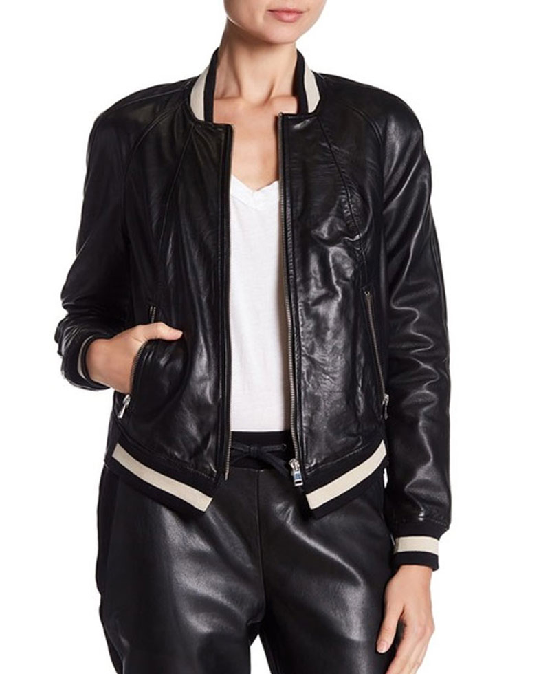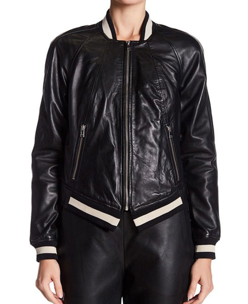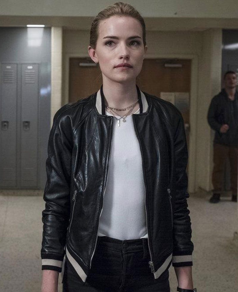 The idea of this jacket is taken from an American popular television drama series where the actress Willa Fitzgerald wore this jacket when she was depicting the role of Colette French. The Dare Me Willa Fitzgerald Bomber Leather Jacket is made from premium quality of genuine leather. The jacket is available in rich black color. The Colette French Leather Jacket has a rib-knitted style collar. The front of this jacket has a classy and branded YKK zipper closure. The inner of the jacket consists of a soft viscose lining for warmth and comfort. The long length sleeves of the Dare Me Willa Fitzgerald Bomber Leather Jacket come with rib knitted cuffs. To keep stuff the jacket has two side waist pockets on its frontal. The hemline of the Colette French Leather Jacket is rib-knitted which gives it a fitted appearance. It has an overall many appealing features.