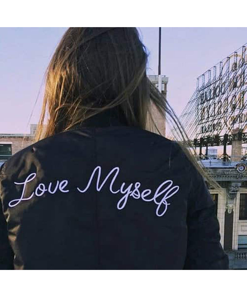 Hailee Steinfeld is an American popular and talented actress, singer and a songwriter who inspired the audience in her music video Love myself with this jacket. The jacket is fabricated with the top quality of satin material. The internal side of this jacket is stitched with soft and smooth viscose lining that keeps you warm and comfortable all the time. Love Myself Hailee Steinfeld jacket has rib-knitted style cuffs on full-lengths style sleeves. This bomber jacket has front ykk branded zipper for the closure that makes the appearance of this garb more captivating. Love Myself bomber jacket has a rib-knitted hemline as well. There is a design of “Love Myself” on the back of this bomber jacket. With a round neckline erect collar, this jacket looks divine.