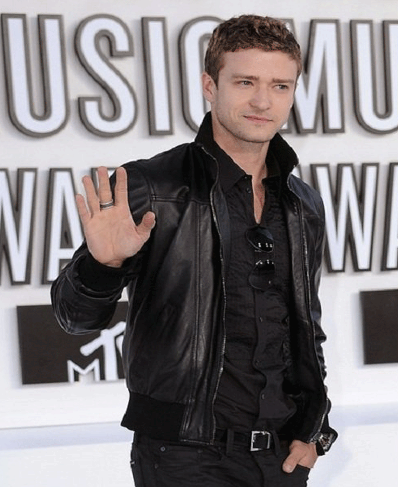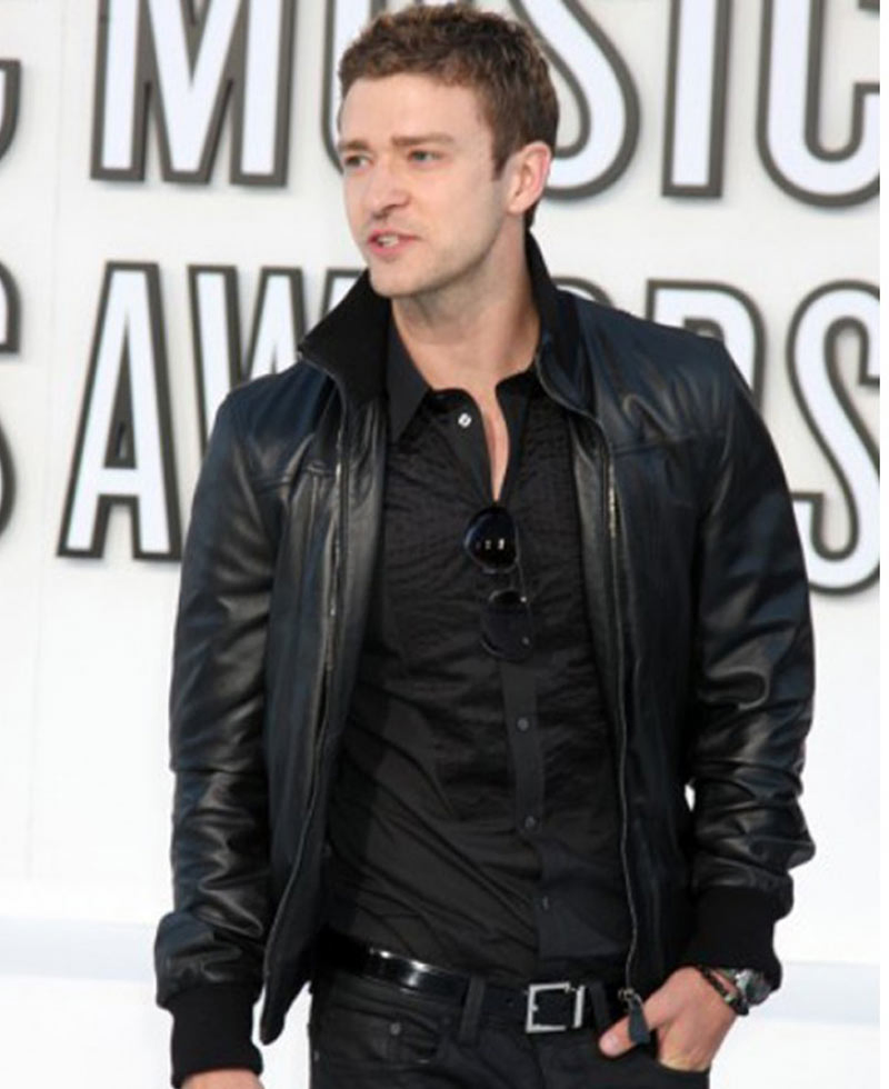 Justin Timberlake Black Leather Bomber Jacket
