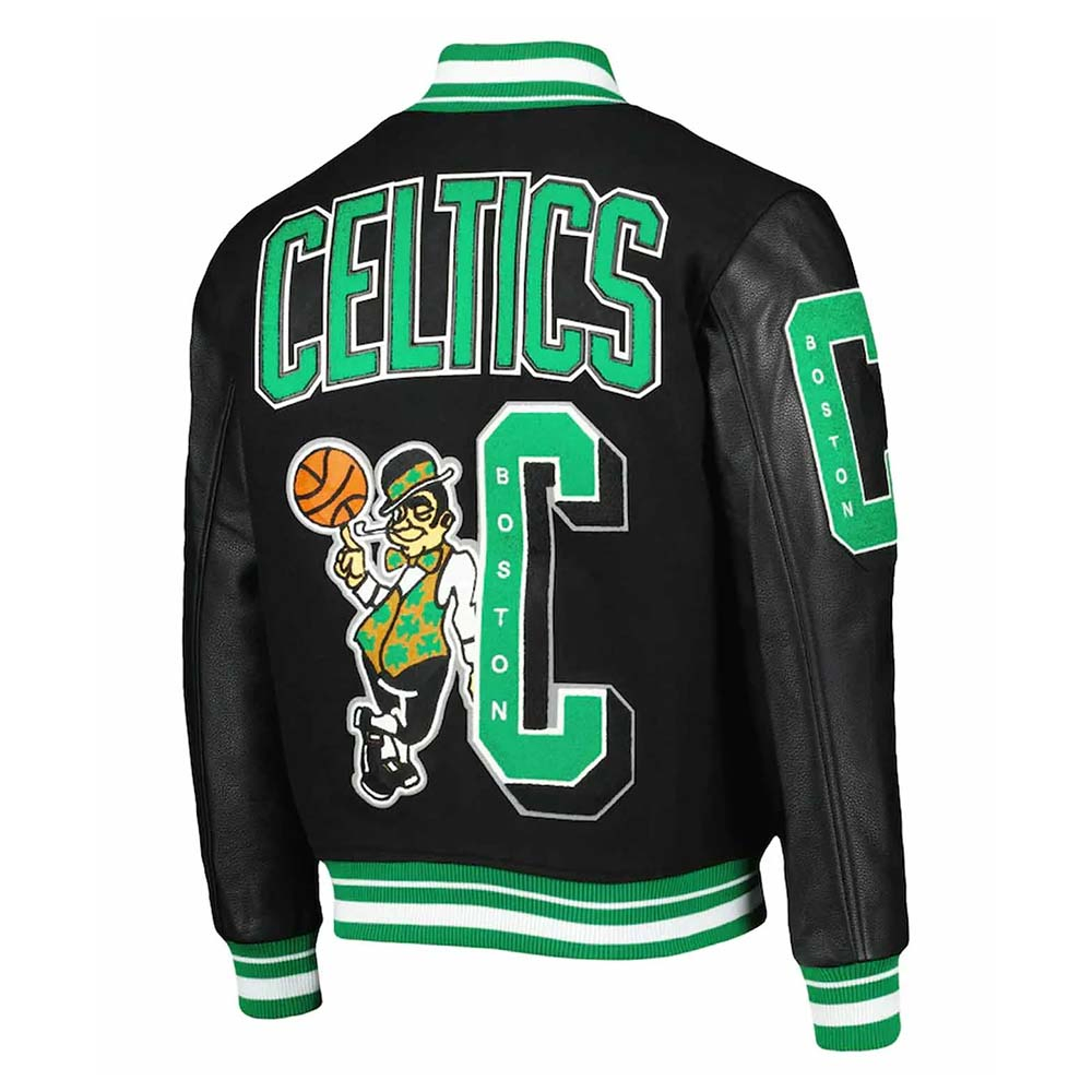 If You Want a Touch of Athletic Style to Your Outfit, Then There is No Better Option Than the Boston Celtics Mash Up Finals Varsity Jacket. Its Premium Quality Wool Fabric Makes It Warm and Ageless; Its Soft Viscose Inner Will Make It Restful and Sweat-free. The Solid Black Color Will Smarten Your Personality. The Boston Celtics Mash Up Finals Varsity Jacket Has Been Styled Using Attributes Like a Rib-knitted Stand-up Collar, Snap Tab Buttoned/zippered Closure, Rib-knitted Cuffs, a Truly Impressive Hemline, and Two Side Waist With Two Inner Pockets. Now Wear the Boston Celtics Varsity Jacket With Such Confidence and Flair With the Essence of Game Spirit.