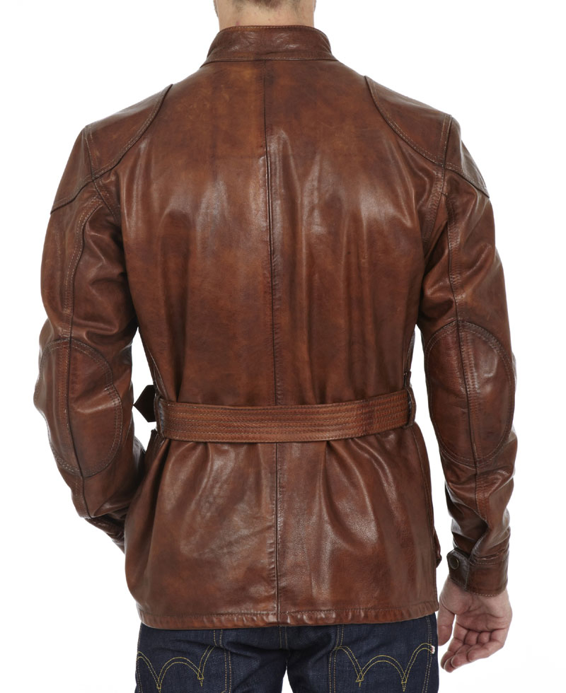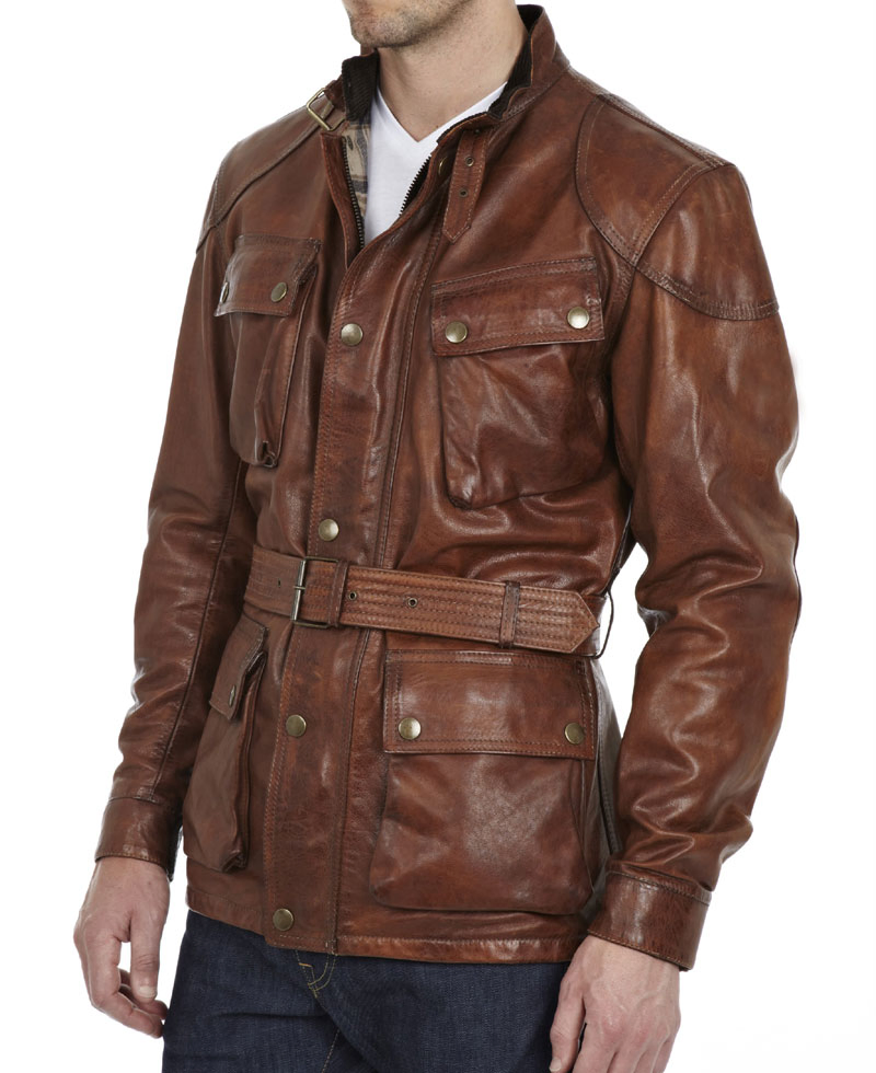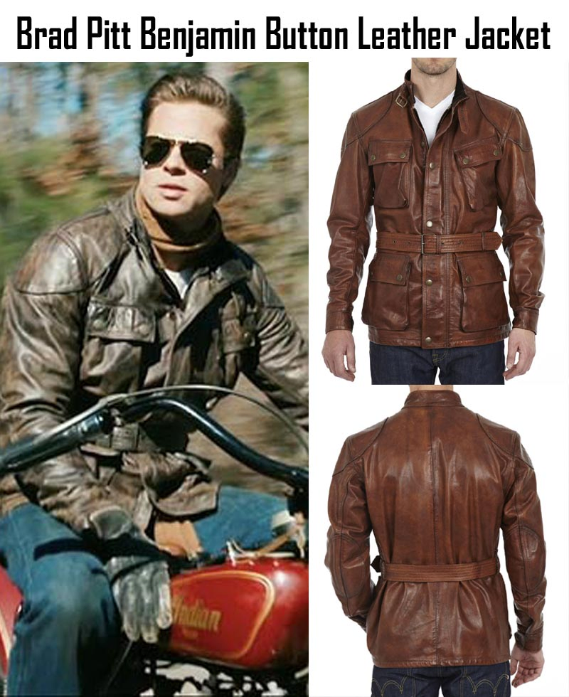 Brad Pitt Benjamin Button Leather Jacket is a gimmick of Benjamin or Brad Pitt outerwear, it has been crafted from genuine leather. This outfit contains stand collar with buckled belt strap, front zipper closing and buttoned closure as well. Brown Leather Motorcycle Jacket also covers waist belt adjustment, four pockets and long sleeves with buttoned cuffs. Benjamin Button Motorcycle Jacket is dark brown in color which gives stupendous attraction.