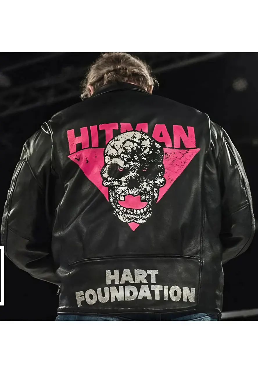 The biker jacket for men has a very classic and stylish appearance. The external side of this jacket is manufactured with rich quality genuine leather material. The Hart Foundation jacket comes in an attractive black color. On the internal side of this jacket is a lining of smooth and soft viscose lining that keeps you warm and comfy all the time. The Hart Foundation jacket comes with a ykk branded zipper attached to its front side for the closure. The notch lapel style collar looks so stunning on this biker leather jacket. Bret Hart Foundation leather jacket has a front zipper chest and waist pockets where you can secure stuff. The jacket comes with zipper-style cuffs on full-length style sleeves. It has a HITMAN logo on its backside.