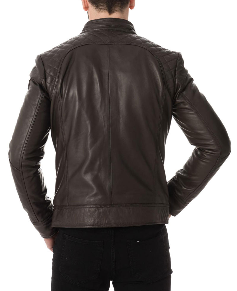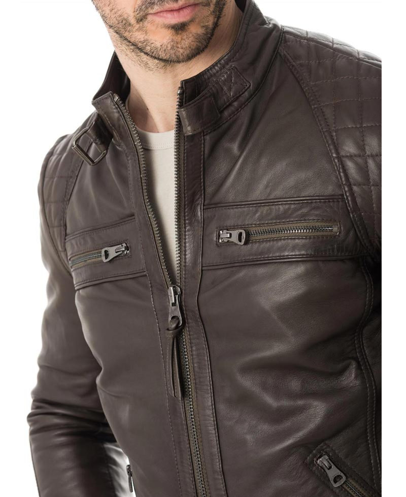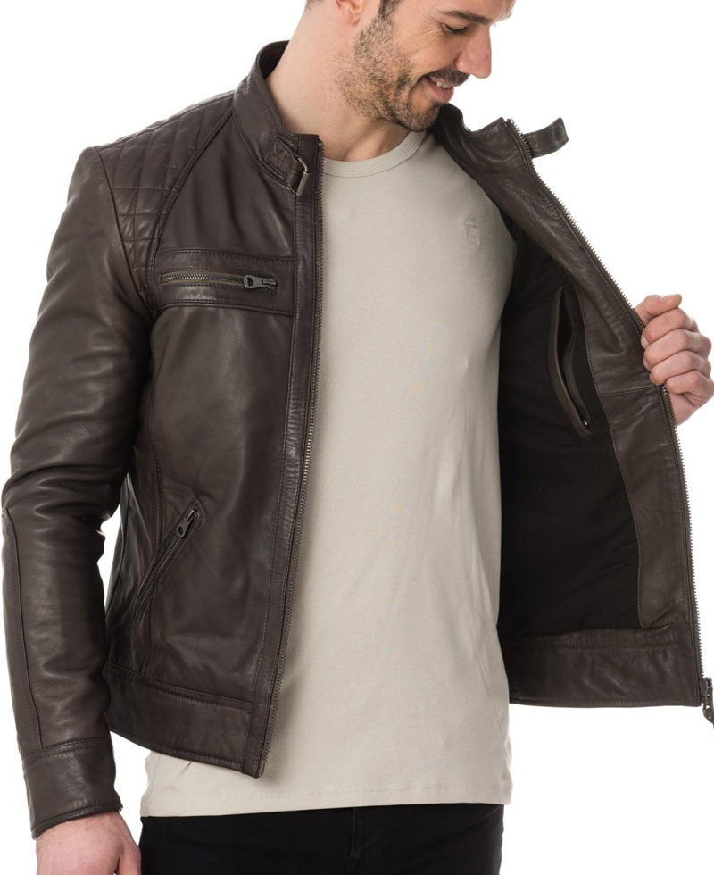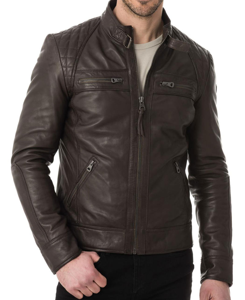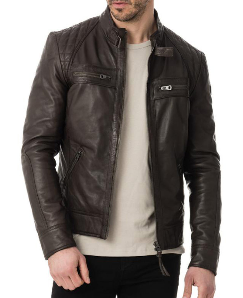 Men prefer clothing that works on their dominant traits and is true portrayal of who they are. So they chose clothing that doesn’t only make them look handsome but boost their confidence as well and brown leather jacket men is the perfect choice for it. The lavish buckle collar jacket is available in both genuine leather and faux leather to bring variety to the customer. Casual brown jacket has front zipper closure and a buckle strap collar that makes the jacket appealing to the eye. Zipper pockets are present on both side of chest and on both sides of waist and an insert pocket is present on the inside to increase the utility of the casual brown jacket. Brown leather jacket highlight is asymmetrical quilted shoulders that covers the back of the neck as well and open hem cuffs on full length sleeves.