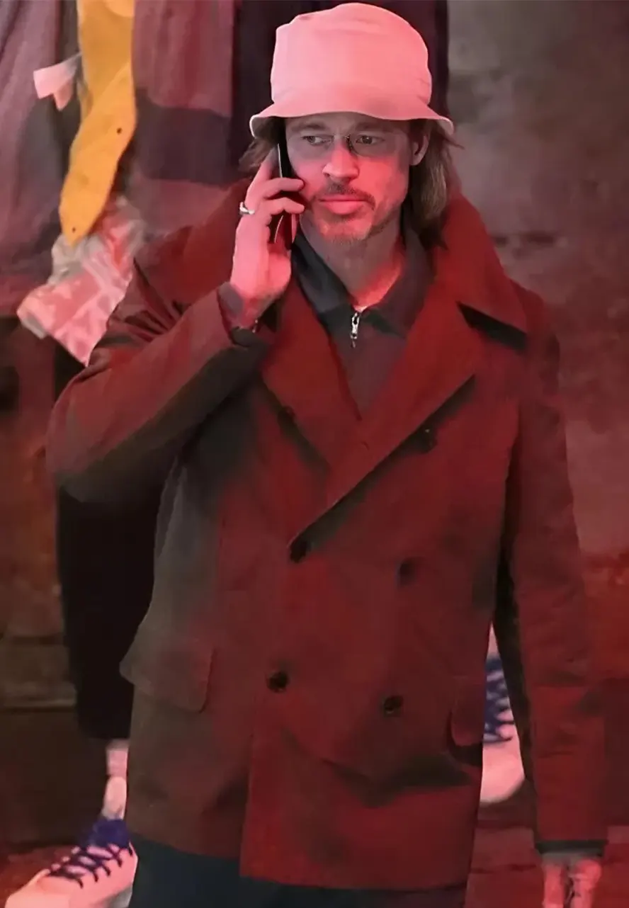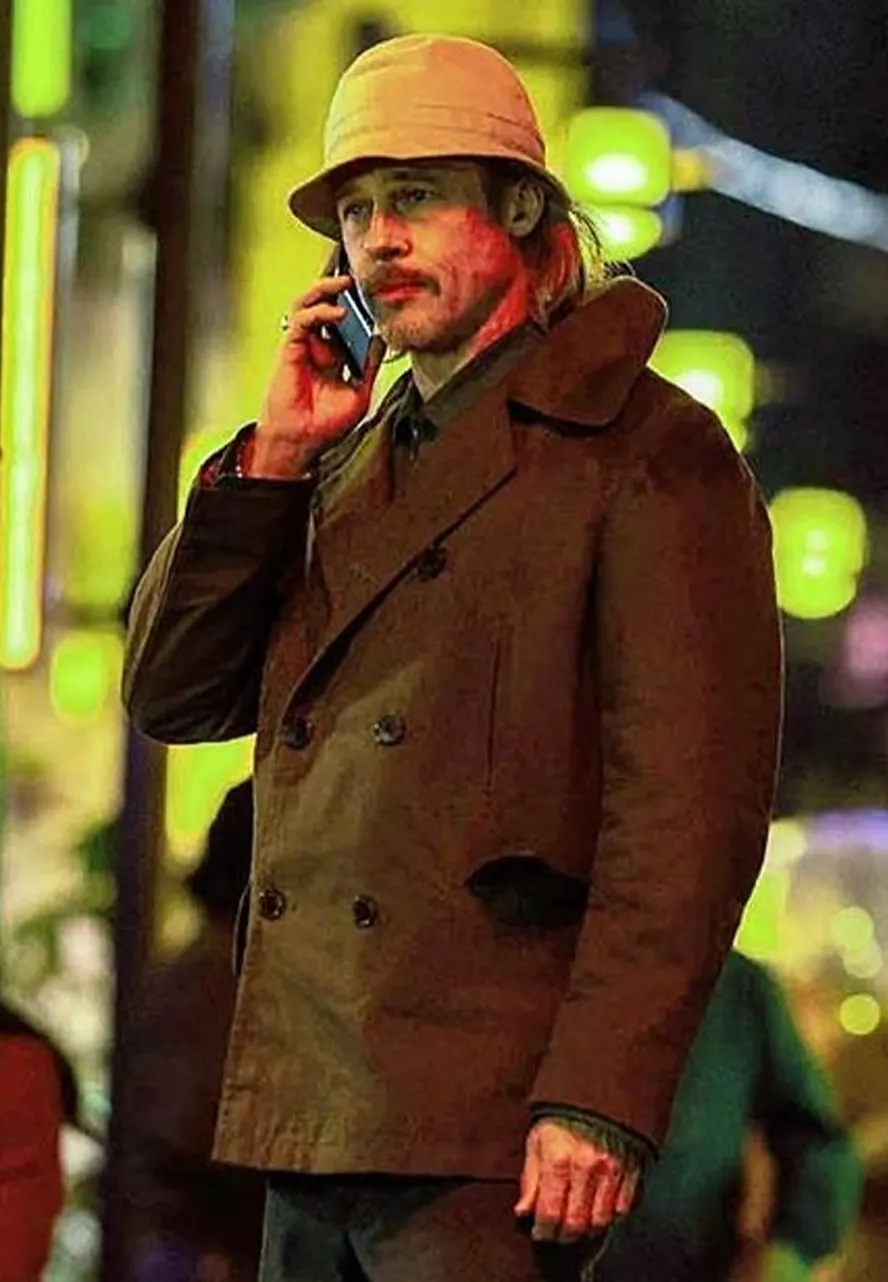 The Bullet Train 2022 Brad Pitt Brown Peacoat Is Very Distinctive And Comfortable For Being Fabricated By Premium Cotton. The Brown Color Of The Brad Pitt Peacoat Makes It Graceful And Elegant To Wear. You Will Definitely Feel More Comfortable Because It Is Lined By Viscose Fabric. The Brad Pitt Brown Peacoat Is Tailored In Very Stylish Manner By Using Remarkable Features Like Lapel Style Collar, Double-breasted Buttoned Closure Will Smarten Your Looks, And Side Waist Flapped Pockets Are Nice To Carry Your Small Possession. If You Wanna Handsome Look Like Your Favorite Actor Brad Pitt, Then You Must Shop And Wear Brad Pitt Peacoat Bullet Train. It’s Time To Amaze Everyone Through Your Dashing Way Of Clothing.