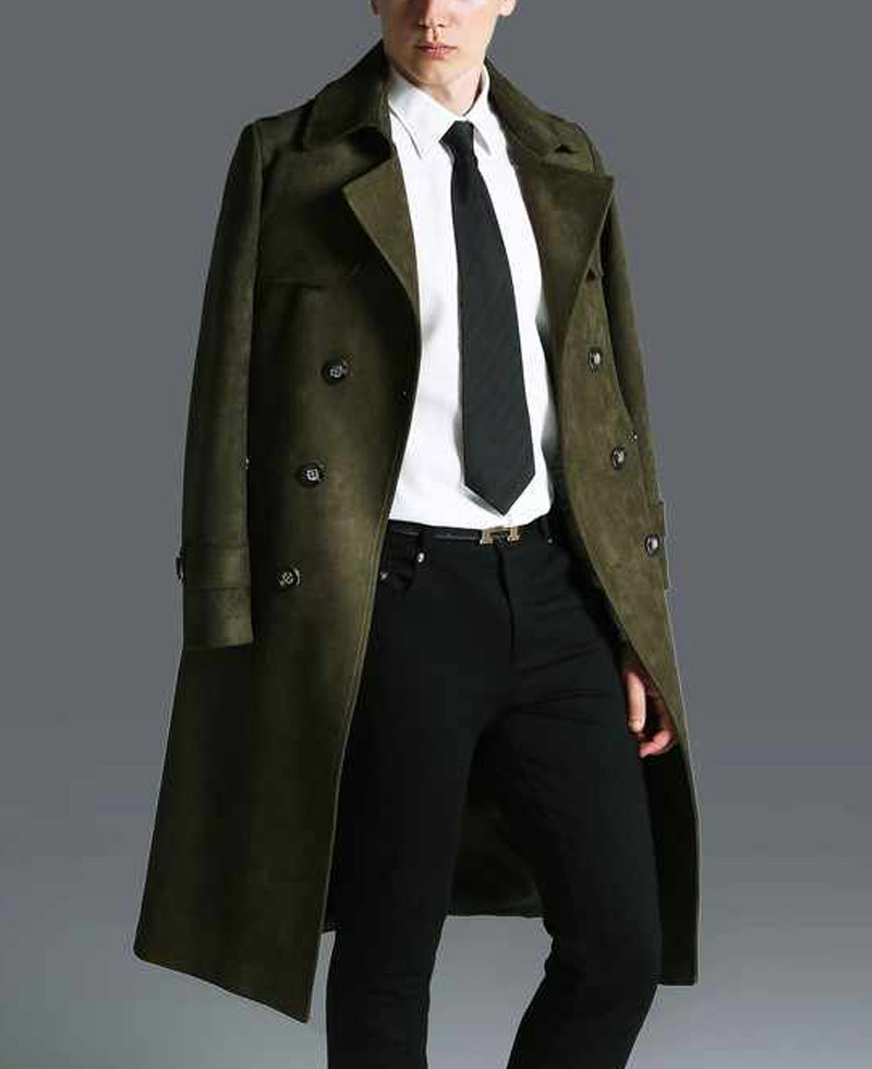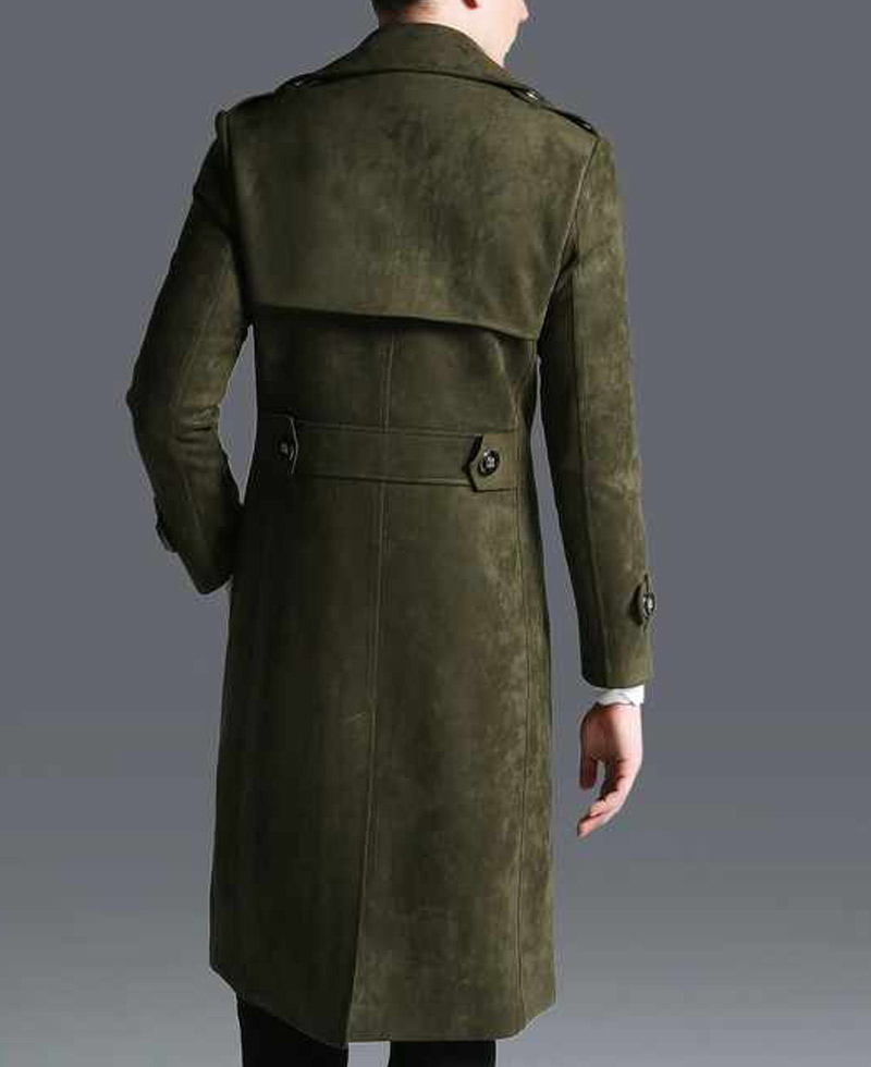 Business Men Suede Military Green Leather Overcoat