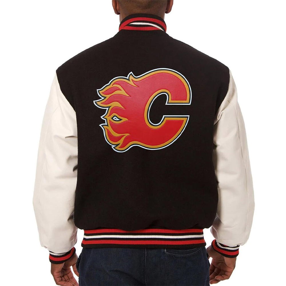It is High Time to Elevate Your Winter Wardrobe and Wrap Yourself With Warmth and Comfort but Keep your style at a High Level of Fashion, Just You just Need to Shop and Wear the Calgary Flames Varsity Jacket That is Eco and Pocket Friendly. The Calgary Flames Black Jacket  Has Been Fabricated in Premium-quality Wool to Make It Warm and Ageless, While Its Soft Viscose Inner Will Comfy You as Long as You Wear It. You Will Look Ravishing in the Black and White color combination. The Calgary Flames Jacket Has Been Designed by Using All Smart Features Like a Rib-knitted Stand-up Collar, Snap Tab Buttoned Closure, and Side Waist Pockets to Make It More Functional. Whether the Temperature Gets Dropped but Not Your Style.