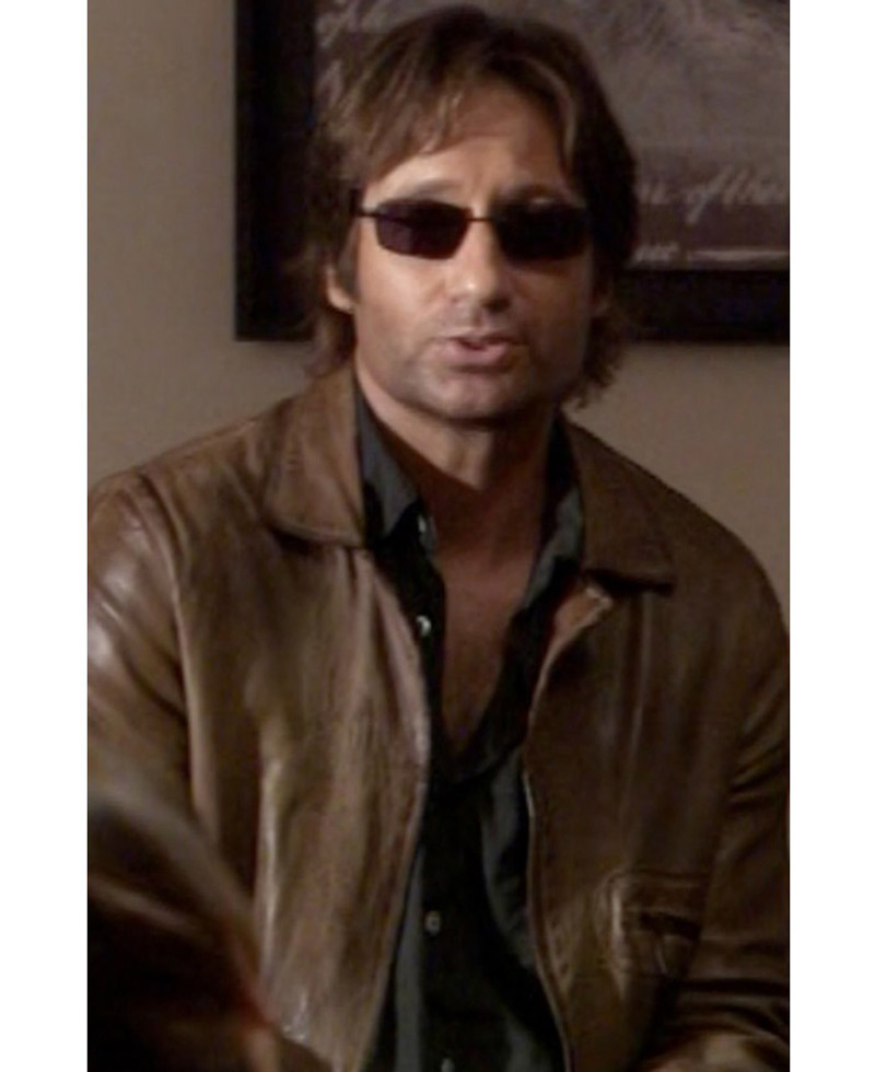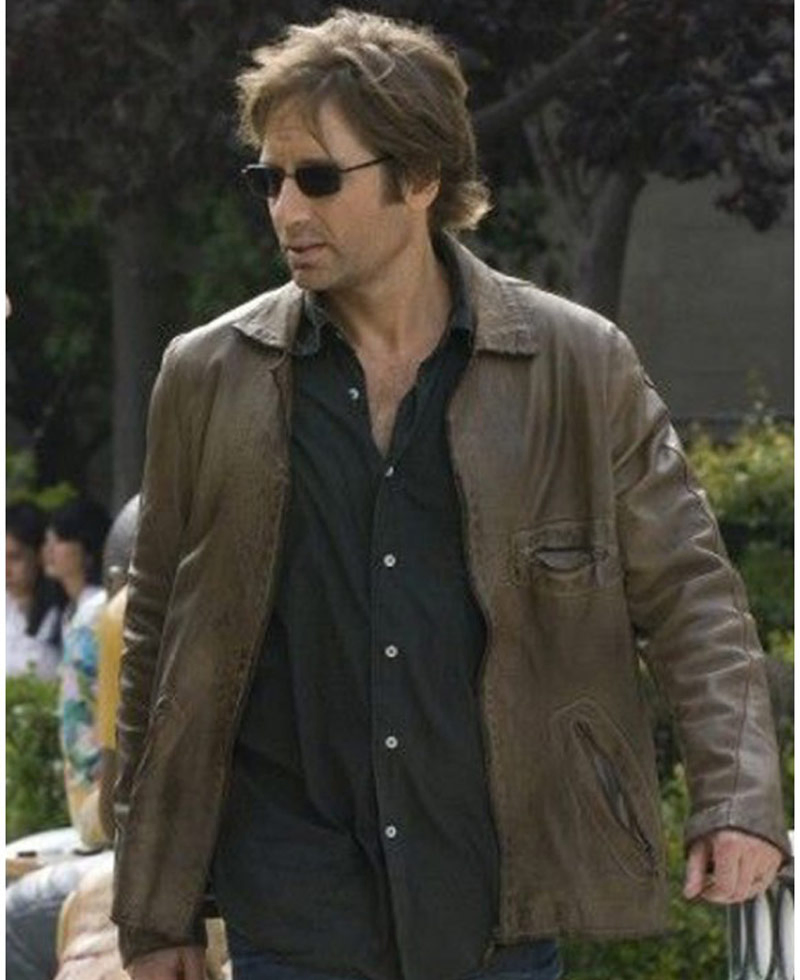 The Hank Moody Brown Leather Jacket is the best replica of the dress which Hank Moody has worn in the drama series named as “Californication”. The legend actor David Duchovny played his role as Hank Moody in the same serial. The outer part of the outfit is prepared from 100% real leather. The sober distressed brown color makes your appearance endearing. The people get impressed by your personality. The viscose lining has been added internally. The Californication David Duchovny Brown Leather Jacket has shirt style collar. Mostly people love to wear shirt style collar because they feel comfortable in it. The front closure is connected with zip. There are two side waist pockets as well as two inside pockets are also given. You can wear it in all occasions like birthday, Christmas, Halloween, wedding etc. The David Duchovny Californication Brown Leather Jacket is an ideal gift for your dear ones.