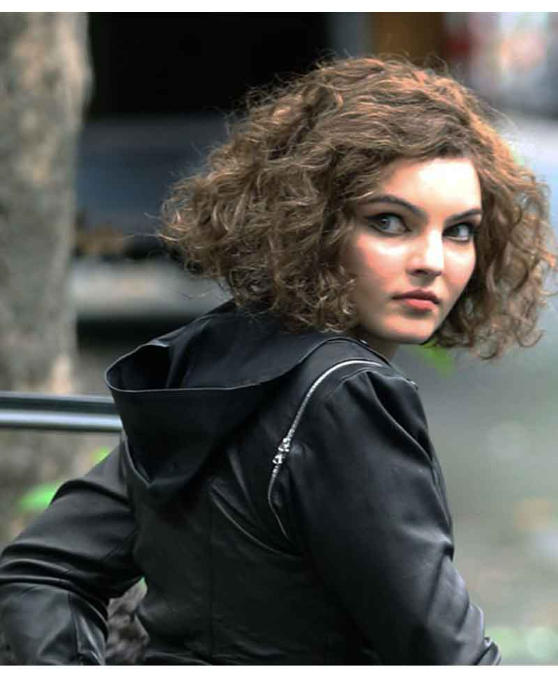 Gotham TV Series Selina Kyle Black Leather Jacket with Hoodie