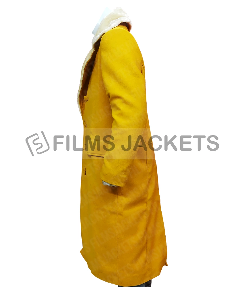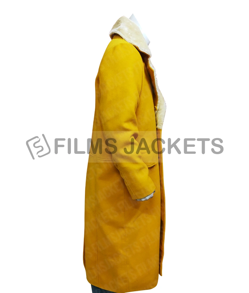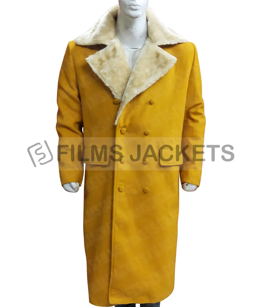 The Famous Actor Yahya Mateen Ii Was Seen Wearing This Candyman Coat in the Upcoming American Supernatural Thriller Movie Called Candyman Where the Actor Wore This Coat When He Was Portraying the Character of Anthony Mccoy. The External Side of This Candyman Trench Coat is Fabricated With Premium and Rich Quality Wool Fabric. On the Internal Side of This Coat, There is a Lining of Smooth and Soft Viscose Attached That Keeps You Warm and Comfortable All the Time. The Candyman Yahya Abdul Mateen Ii Coat Has a Wide Fur Style Lapel Collar. There Are Buttons Attached to the Front Side of This Candyman Trench Coat for the Closure. Candyman 2021 Yahya Abdul Mateen Ii Coat Has an Appealing Yellow Color. The Candyman Trench Coat Has a Shearling Hemline. The Coat Comes With Open Hem Style Cuffs on Full-length Style Sleeves. There Are Outer Pockets on This Apparel as Well.