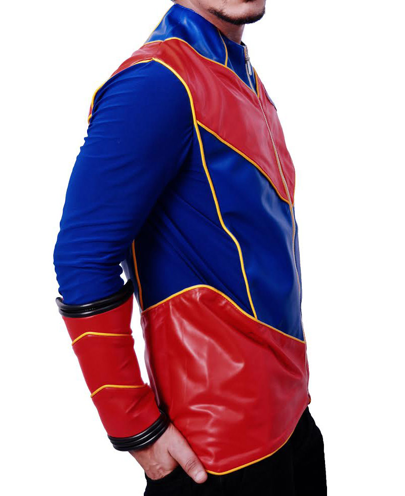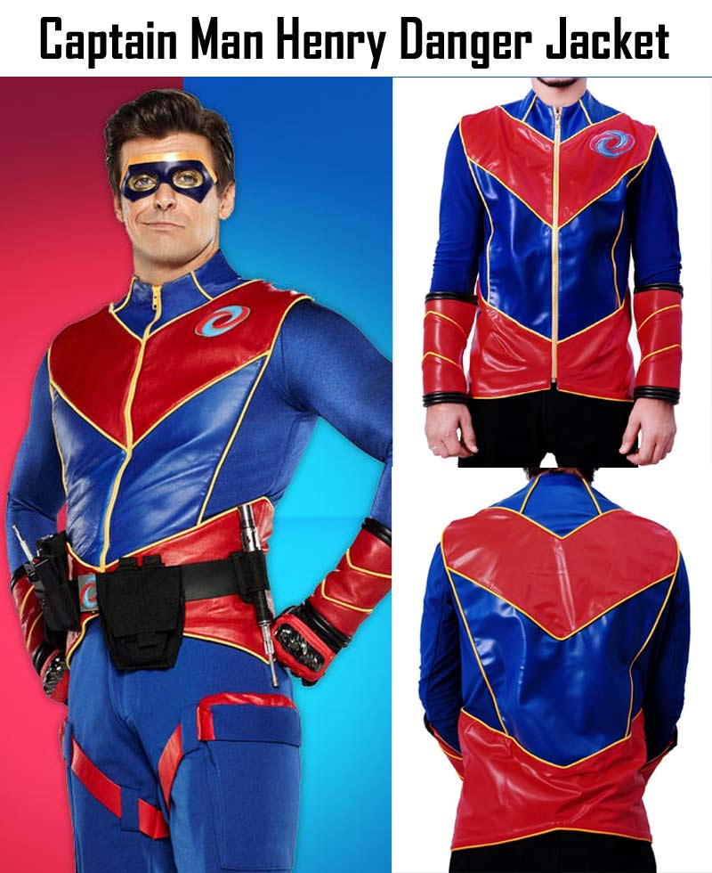 The super appealing Henry Danger Jacket is the inspiration of a television series named as “Henry Danger”. The character Captain Man wore the same jacket in the series and looked gorgeous. The superstar Cooper Barnes played the role of Captain Man. The outer part of the dress is prepared from high grade genuine leather or faux leather. The inside viscose lining has made it soft and durable. The yellow piping is used for designing on front side of Captain Man Jacket. The collarless style is present in it. The YKK zip is given for front shutting. You will enjoy red embossed leather on front and waist of the outfit. The color of the attire is blue and the combination of red, yellow and black has given it unbeatable appearance. The sleeves are long and have slimmer look. You can get dress it in all social gatherings. The red designed cuffs of Henry Danger Cooper Barnes Leather Jacket are increasing the beauty of the sleeves.