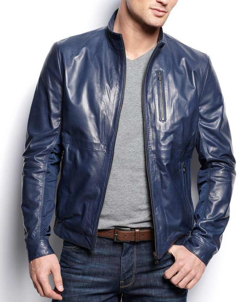What a better way to express oneself then an article of clothing which is accustom to his needs and requirements and is trendy in the same time. Fashion industry has been working to make casual attire more polished which will set a tone about the person. Perfect example for this is men’s navy blue leather jacket. The exciting blue shade of the jackets makes it more appealing to the eye. Navy blue leather jacket is available in both genuine and faux leather tailored to the needs of customer. Front zipper closure along with stand up collar is present in men’s navy blue leather jacket. To make it look classy the jacket has open hem cuffs on full sleeves which have different fabric material on the back side for added depth and intricacy. Navy blue leather jacket has one zipper pocket on chest and one on both side of waist.