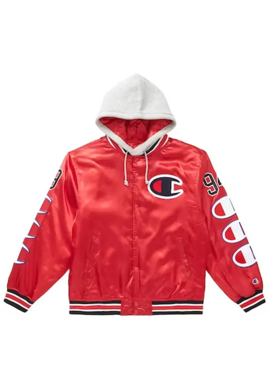 Hoodies Are Comfortable and Versatile That You Can Attire in Almost All Seasons but You Must Need Some Glamour Into Your Hoodie for That You Can Go for the Champion Hooded Varsity Jacket. Its Premium Quality Satin Fabrication Makes It Light Weighted and Wearable in All Seasons Furthermore Its Soft Viscose Inner Makes It Comfortable and Sweat-free. The Shiny Red Color Will Smarten Your Looks. The Champion Hooded Satin Varsity Jacket Has Been Featured by Hooded Collar, Snap Tab Buttoned Closure, Rib-knitted Cuffs, and Hemline and Side Waist Pockets. The Champion Hooded Satin Varsity Jacket is a Wardrobe Staple That Can Be Dressed Up on Any Occasion or You Can Also Wear It Casually.